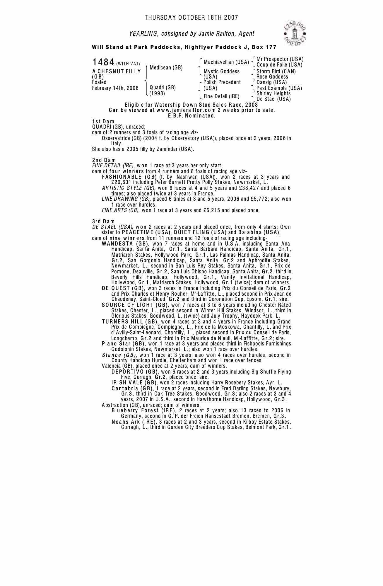 July Sale 2007 lot 304 F. by Zamindar (USA) 2005, Patrick Eddery Ltd.=>Eileen Farrelly 1,400 gns