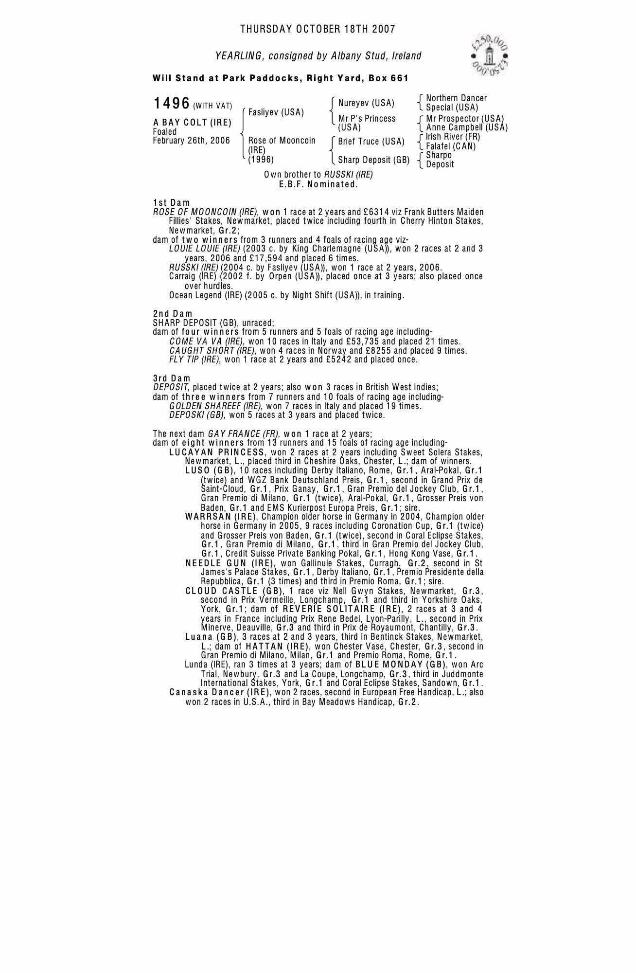 Autumn Horses in Training Sale 2007 lot 1373 Russki (IRE) (C.), Trillium Place Stables (D. Simcock)=>Vendor 35,000 gns