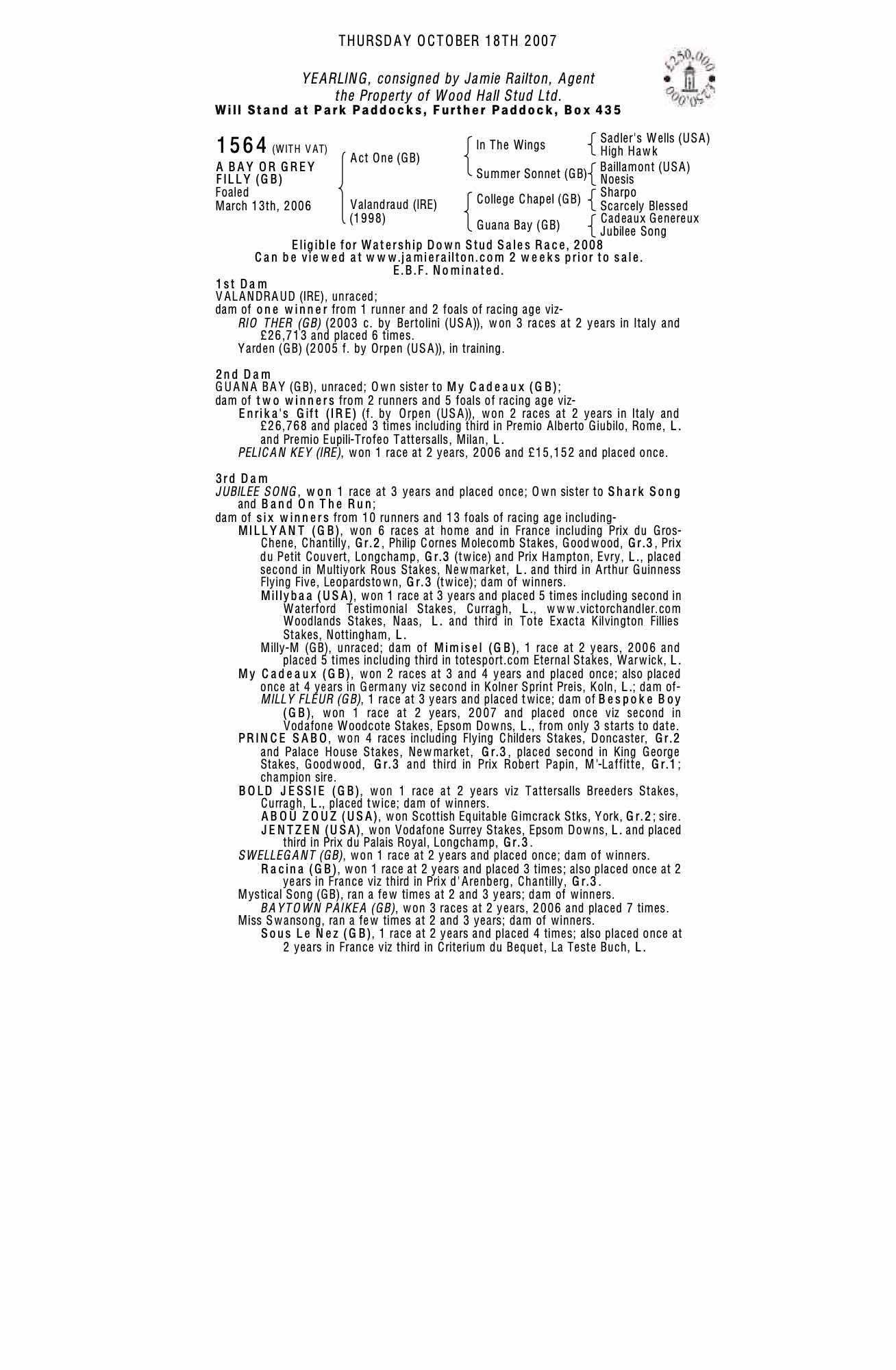 October Yearling Sale, Book 2 2011 lot 1195 F. by Jeremy (USA) 2010, Nicola Kent=>Blandford Bloodstock 20,000 gns