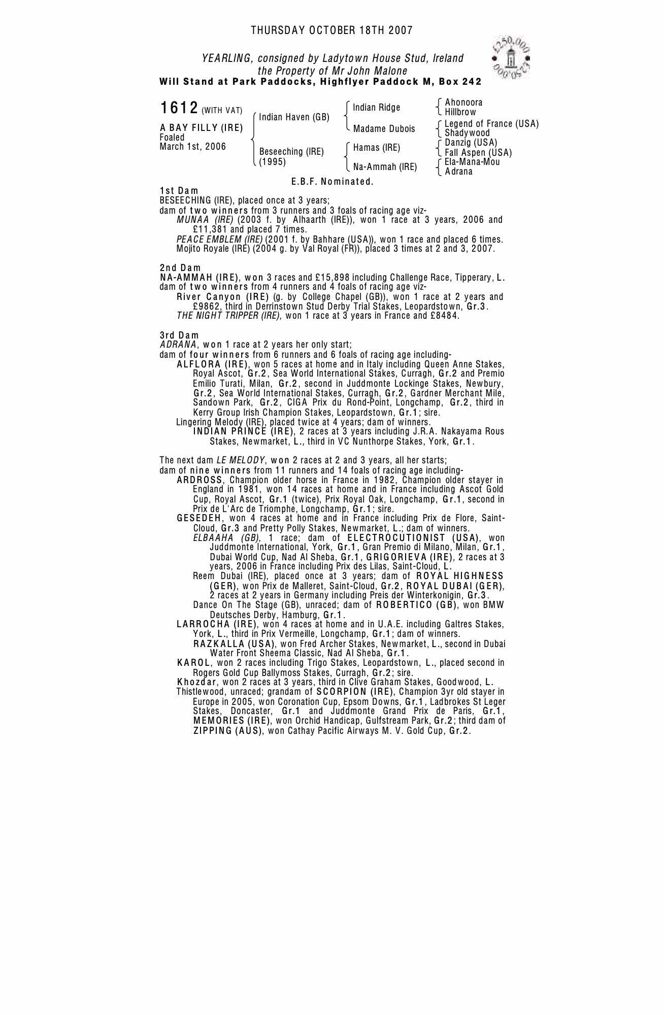 Consignor: Ladytown House Stud, Ireland