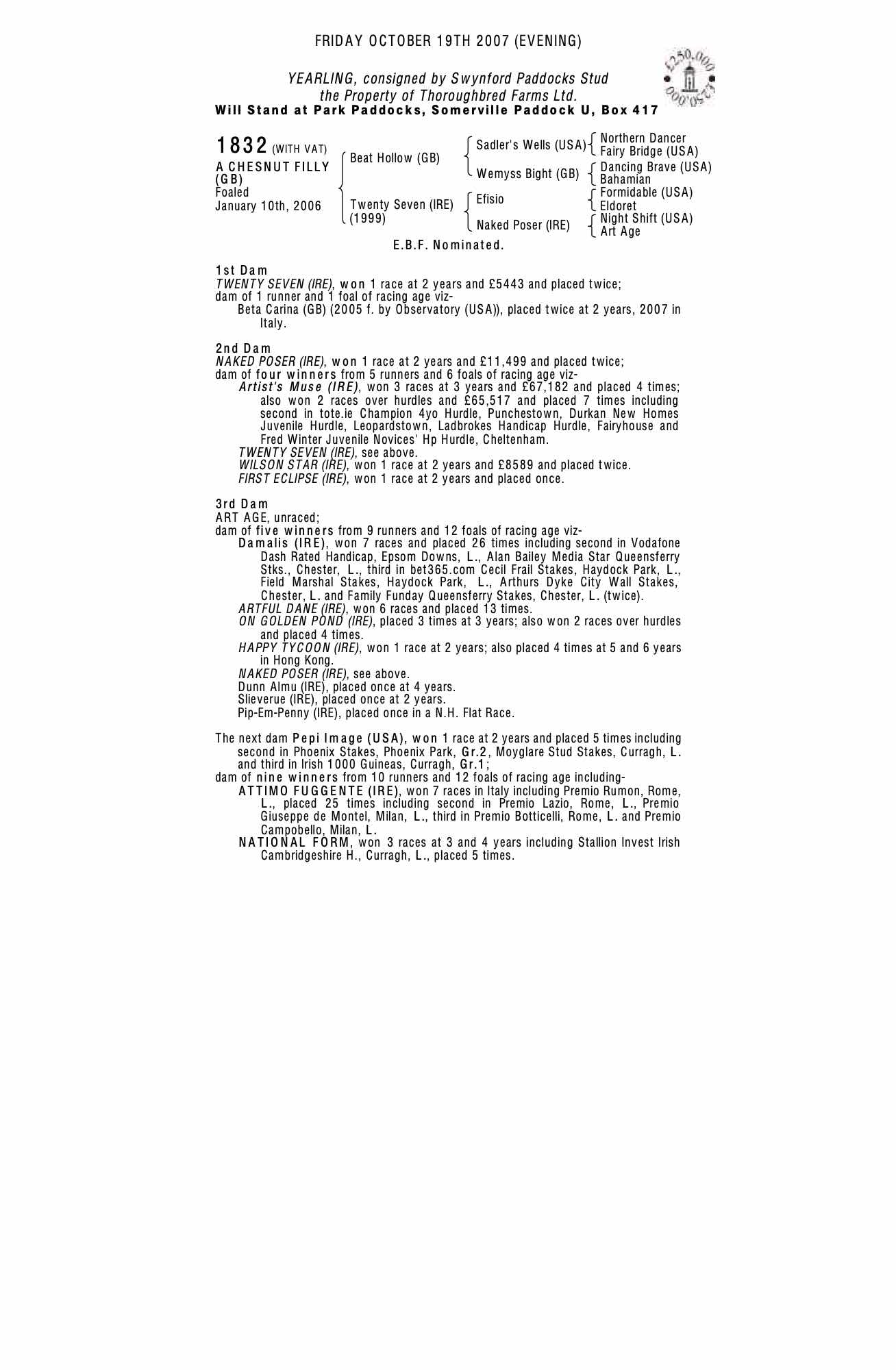 October Yearling Sale, Book 3 2006 lot 2159 Beta Carina (GB) (F. by Observatory (USA)), Thoroughbred Farms Ltd=>Fabrizio Camici 4,500 gns