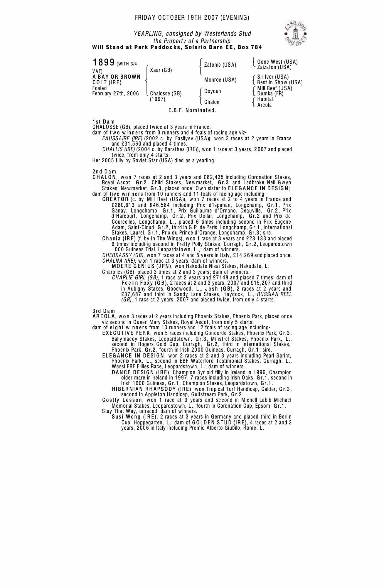 October Yearling Sale, Book 1 2003 lot 453 C. by Fasliyev (USA) 2002, Westerlands Stud=>Royal Amber 60,000 gns