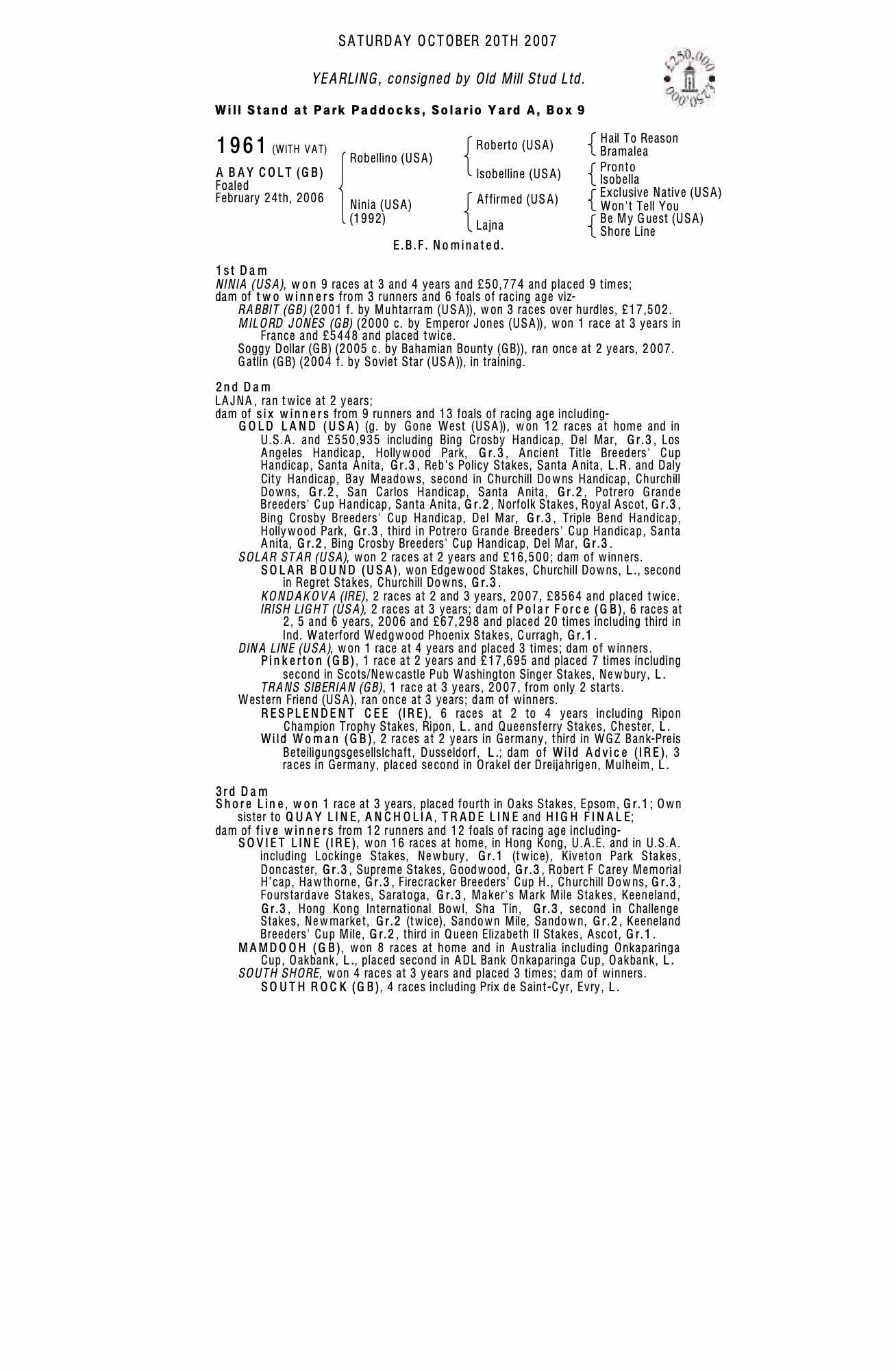 Autumn Horses in Training Sale 2007 lot 869 Soggy Dollar (GB) (C. by Bahamian Bounty (GB)), Flint Cottage Stables=>Vendor 22,000 gns