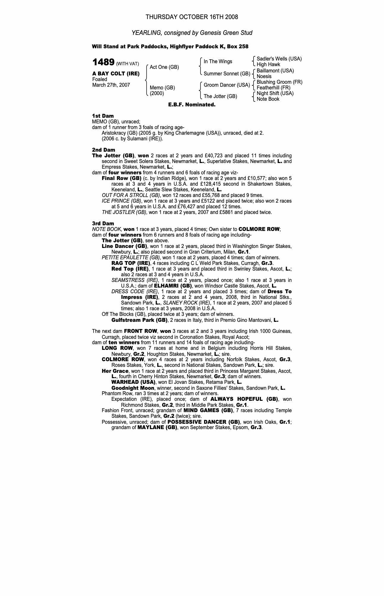 October Yearling Sale, Book 1 2009 lot 569 F. by Kheleyf (USA) 2008, Genesis Green Stud=>Emma O'Gorman 45,000 gns