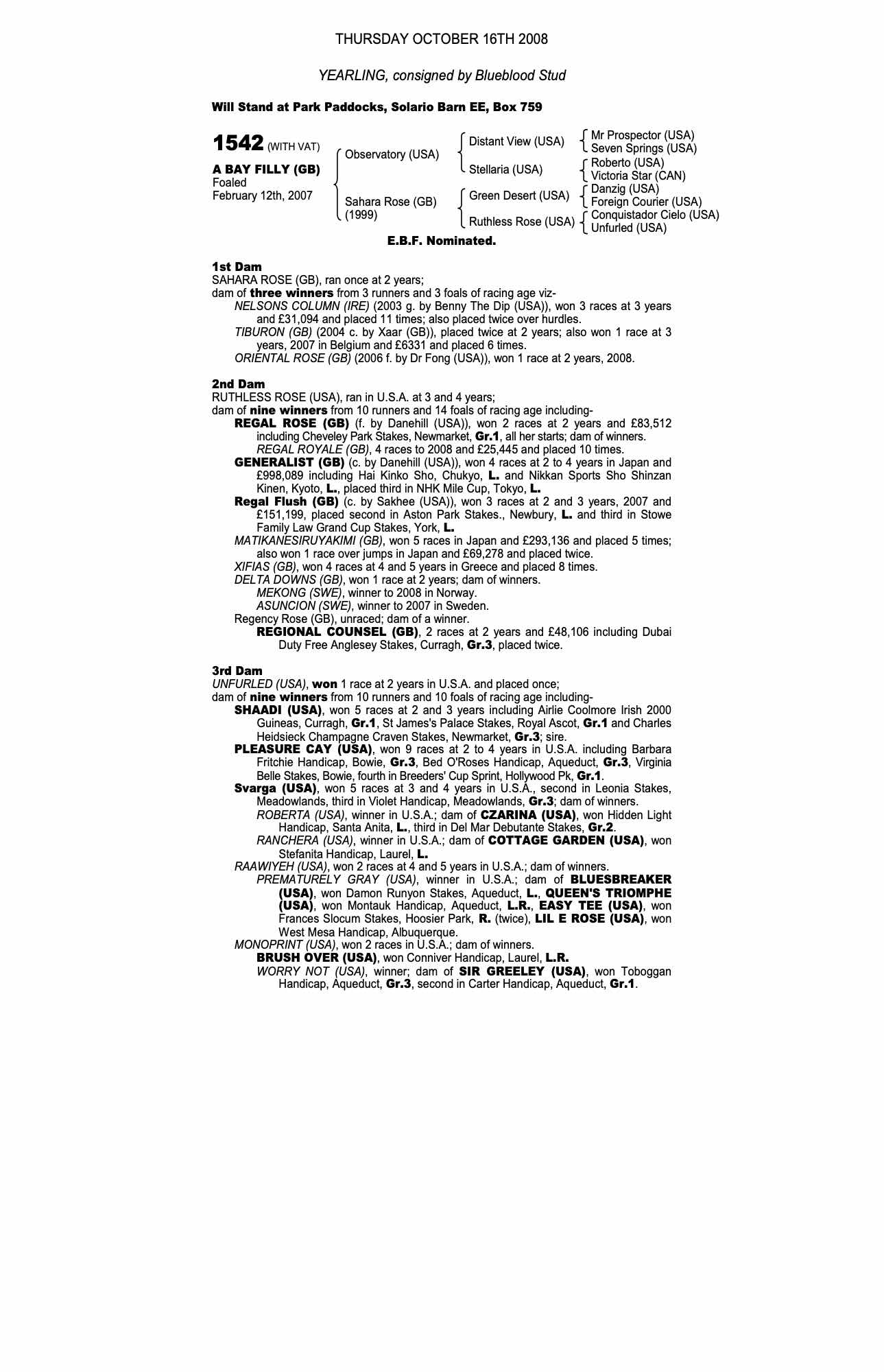 February Sale 2010 lot 32 Oriental Rose (GB) (F. by Dr Fong (USA)), Dungehill Farm=>Lot Not Sold 1,800 gns