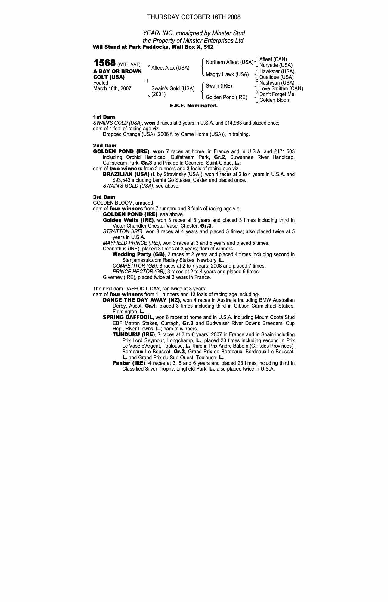 December Foal Sale 2008 lot 1420 F. by Mr Greeley (USA) 2008, Minster Stud=>Lot Not Sold 52,000 gns