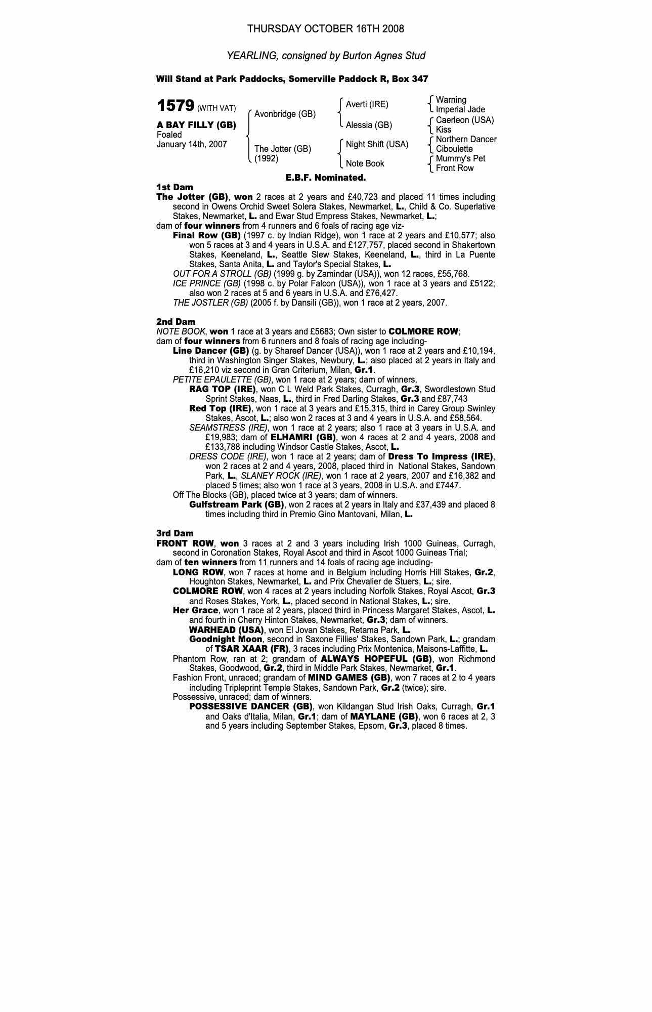 October Yearling Sale 2001 lot 537 F. by Groom Dancer (USA) , Burton Agnes Stud=>Lot Not Sold 24,000 gns