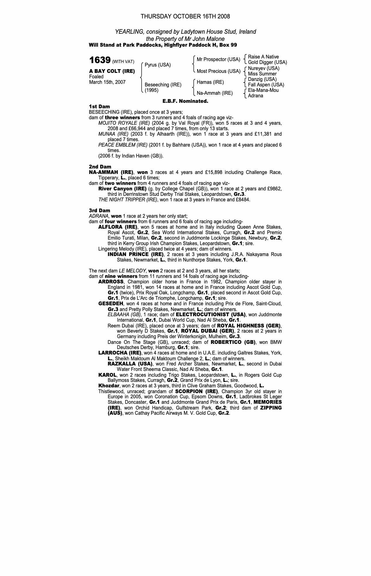 October Yearling Sale, Book 3 2007 lot 1612 F. by Indian Haven (GB) 2006, Ladytown House Stud, Ireland=>Lot Not Sold