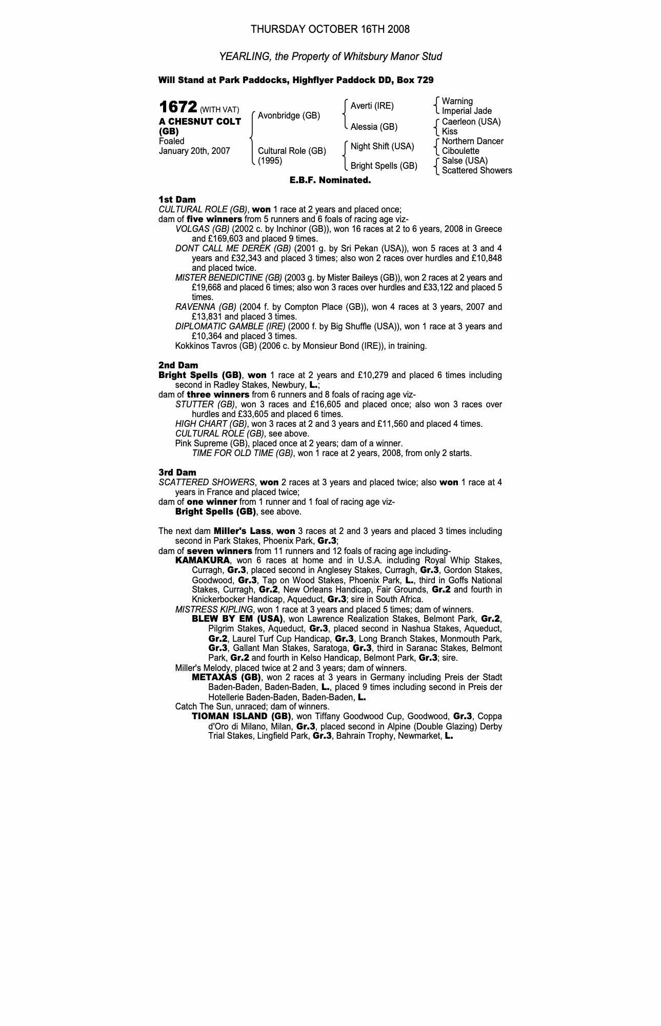 Consignor: Whitsbury Manor Stud