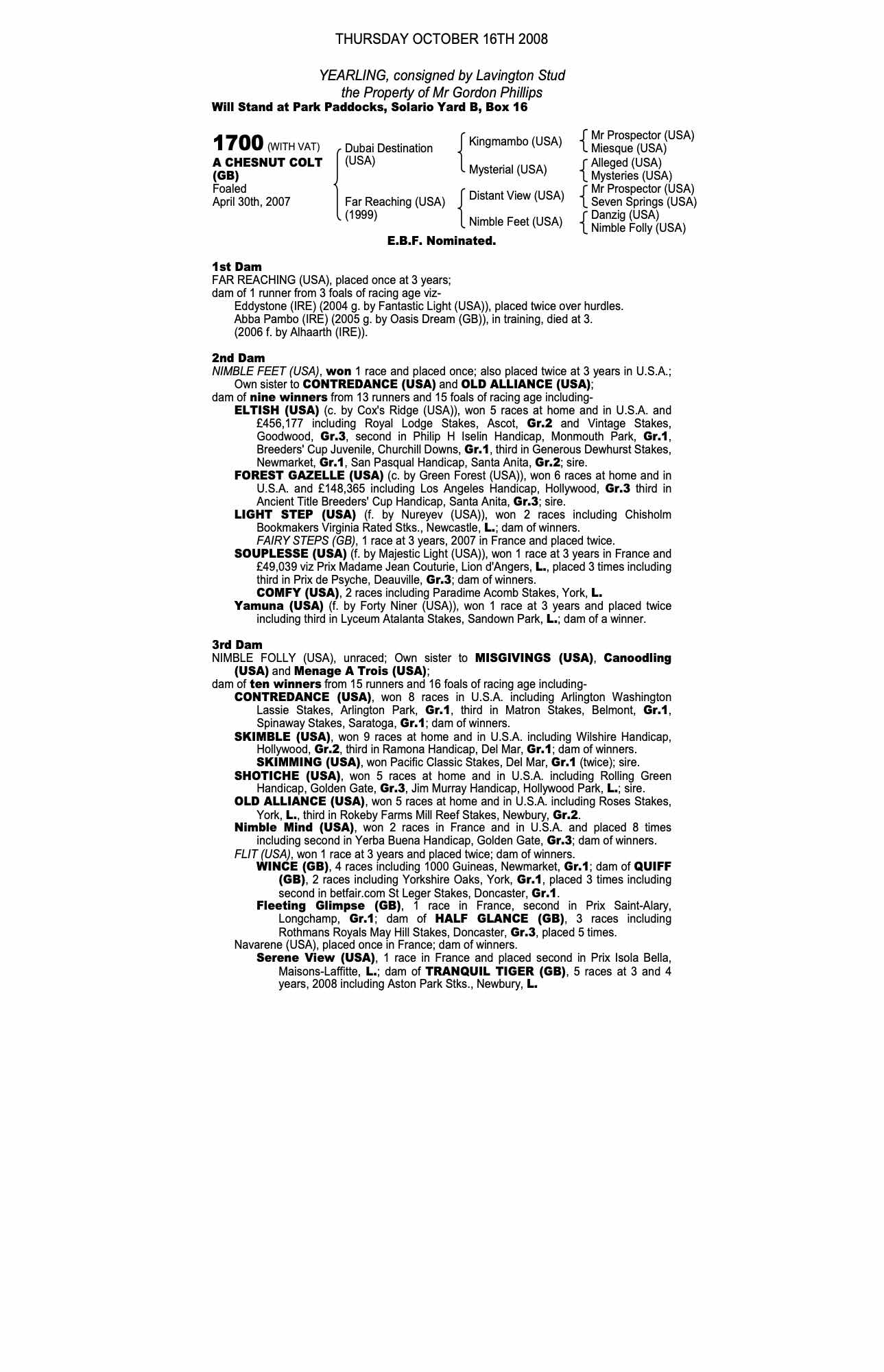 October Yearling Sale, Book 3 2007 lot 1683 F. by Alhaarth (IRE) 2006, Lavington Stud=>Peter Winkworth 4,000 gns