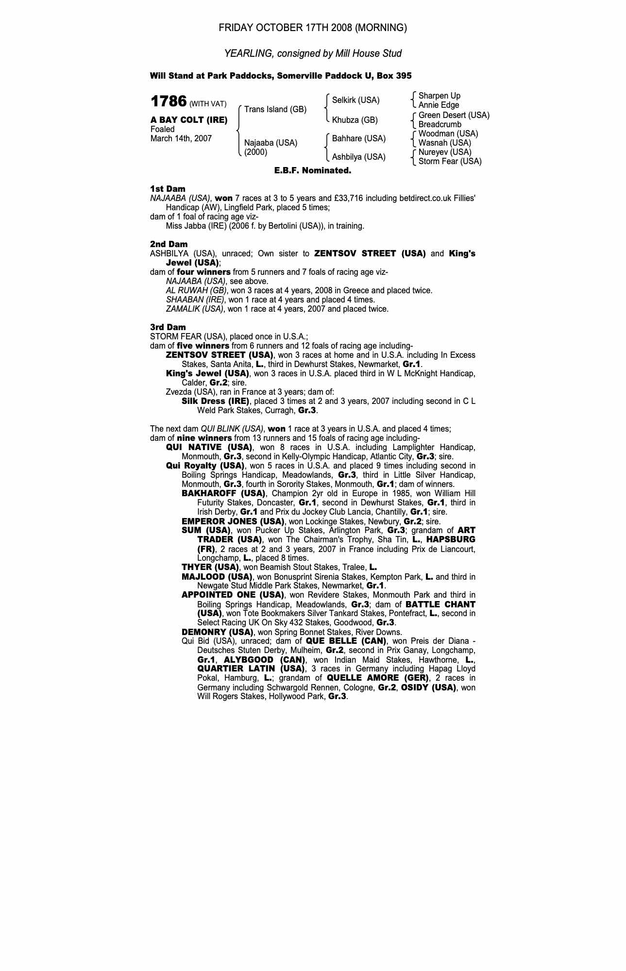 December Foal Sale 2007 lot 800, Rathasker Stud, Ireland=>J Sillett 9,500 gns