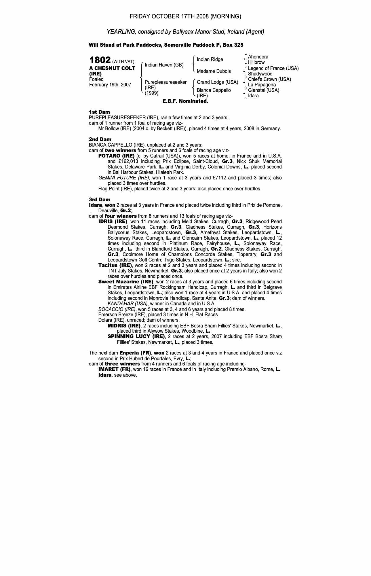 Consignor: Ballysax Manor Stud, Ireland (Agent)
