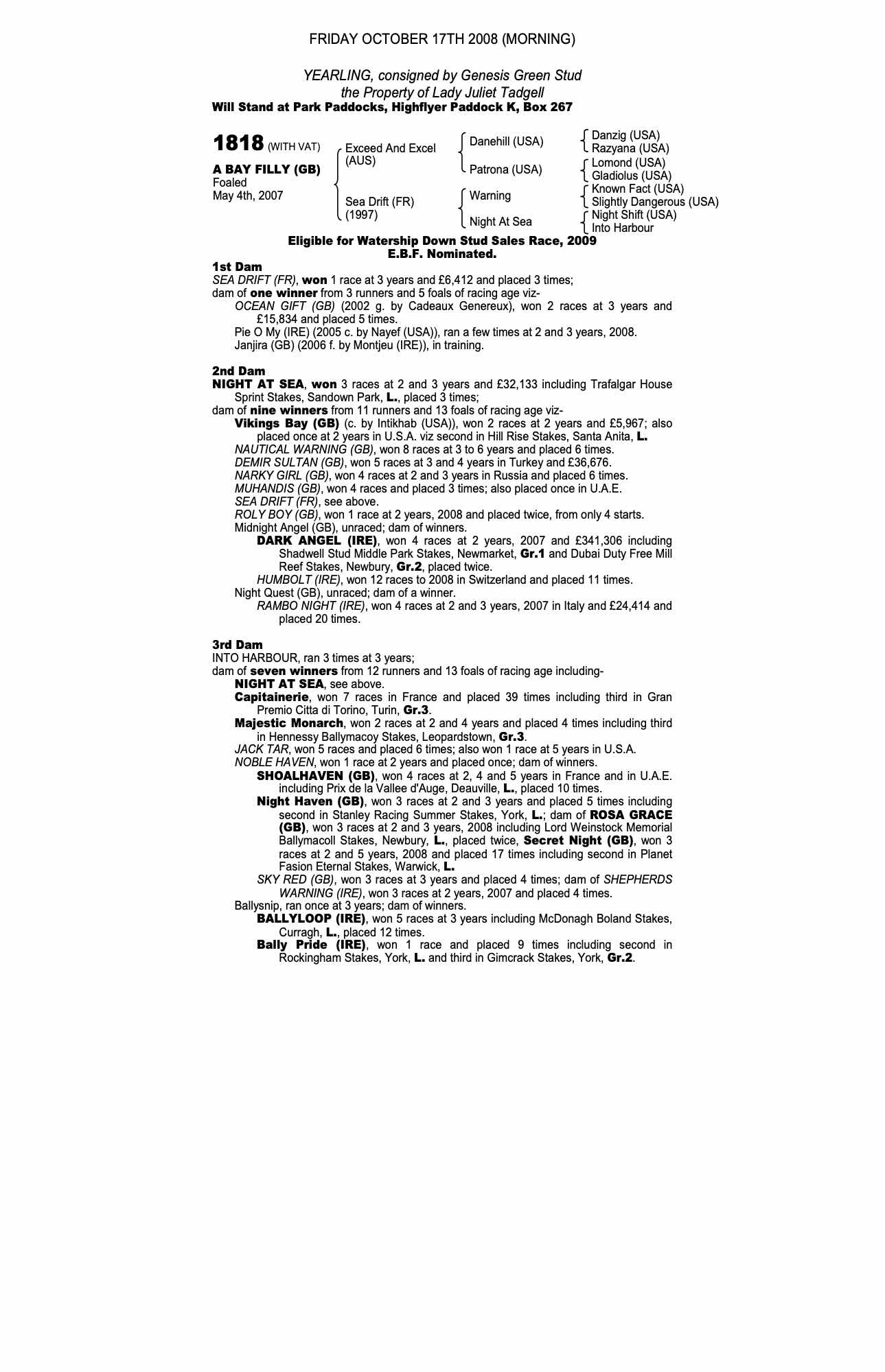 October Yearling Sale, Book 3 2009 lot 1513 F. by Val Royal (FR) 2008, Genesis Green Stud=>Annelie Larsson 5,000 gns