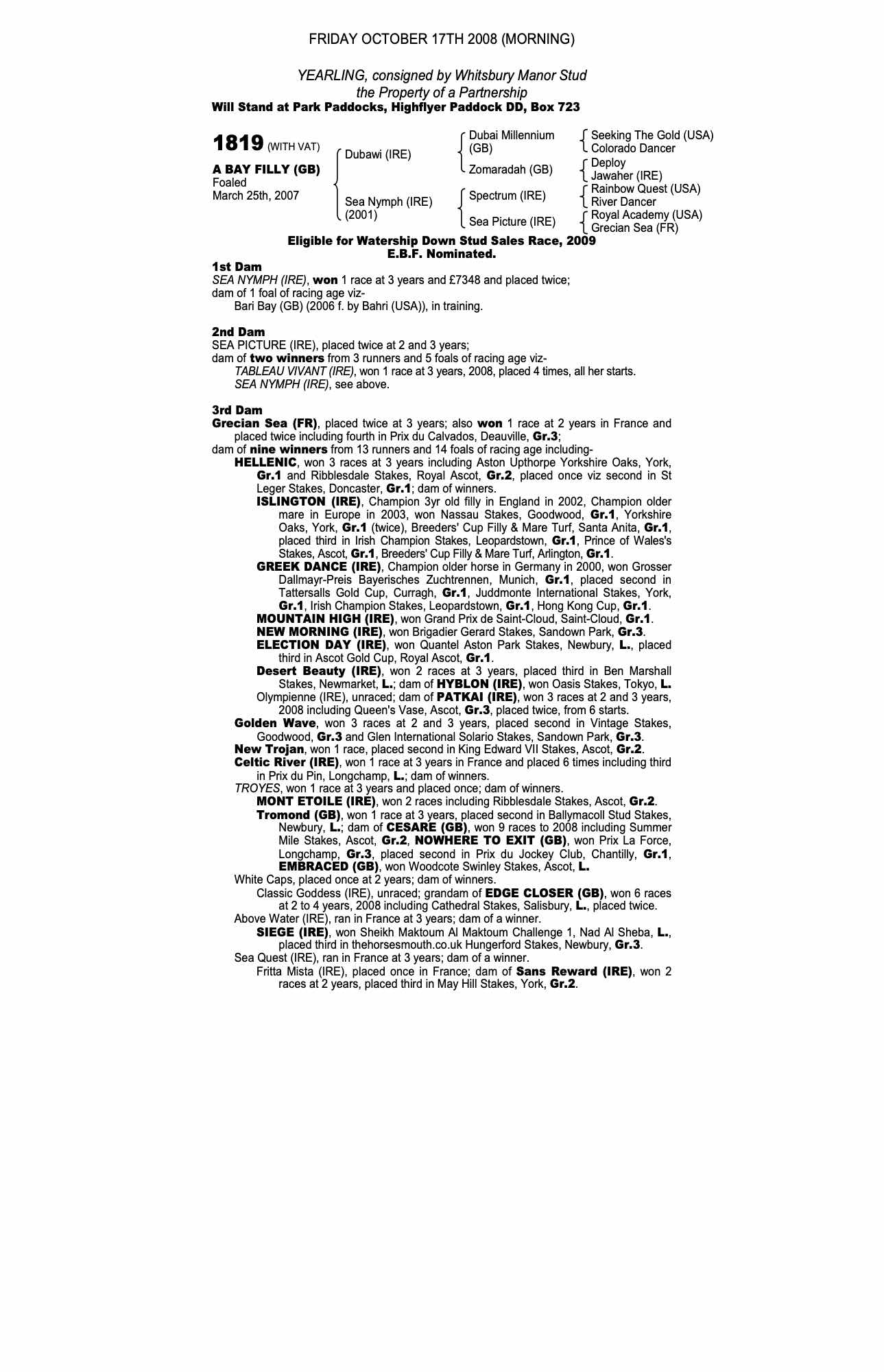 October Yearling Sale, Book 3 2007 lot 1506 F. by Bahri (USA) 2006, Whitsbury Manor Stud=>Vendor 5,000 gns