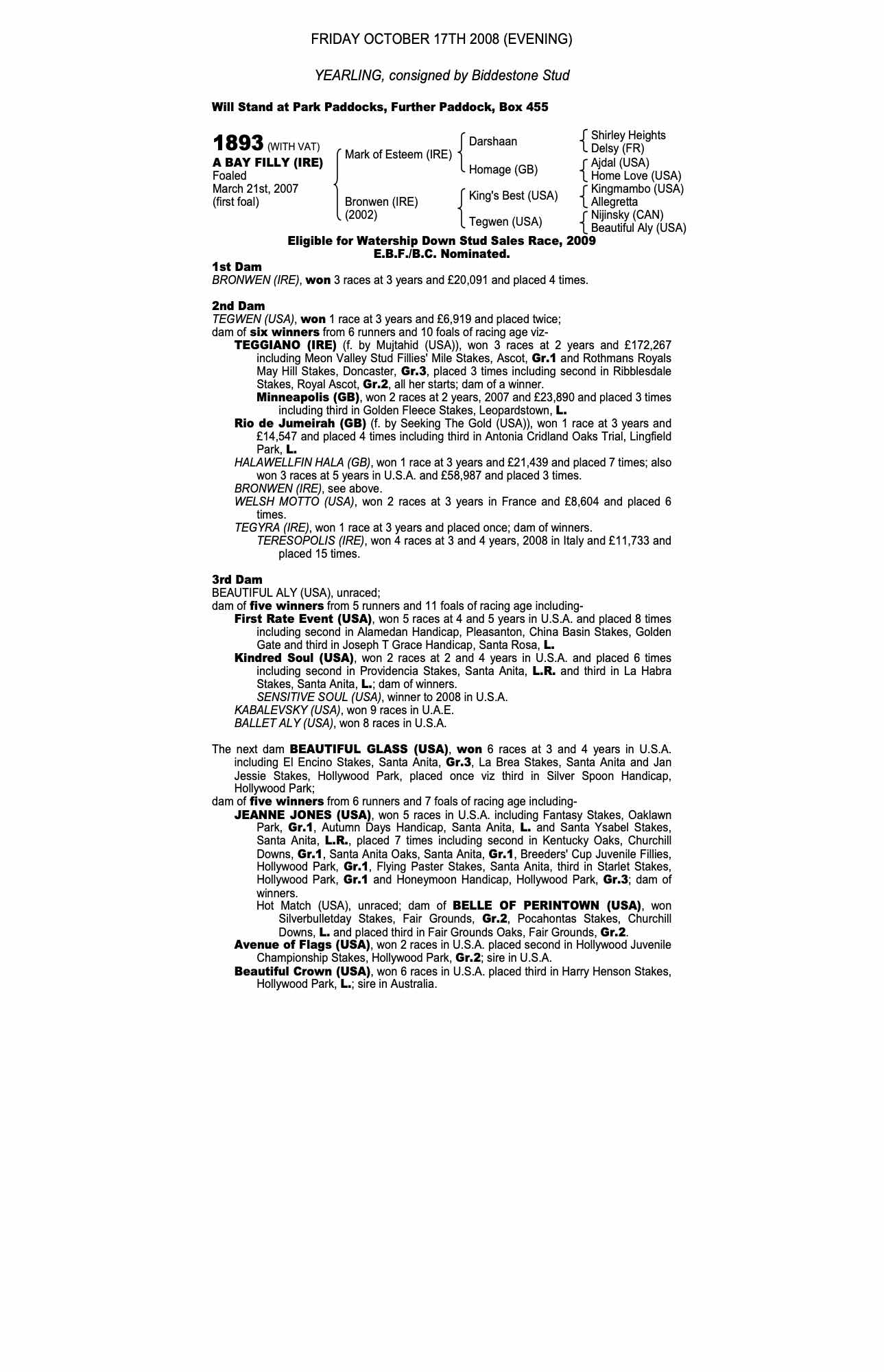 October Yearling Sale, Book 2 2009 lot 1008 F. by Shamardal (USA) 2008, Furnace Mill Stud=>W Jarvis 30,000 gns