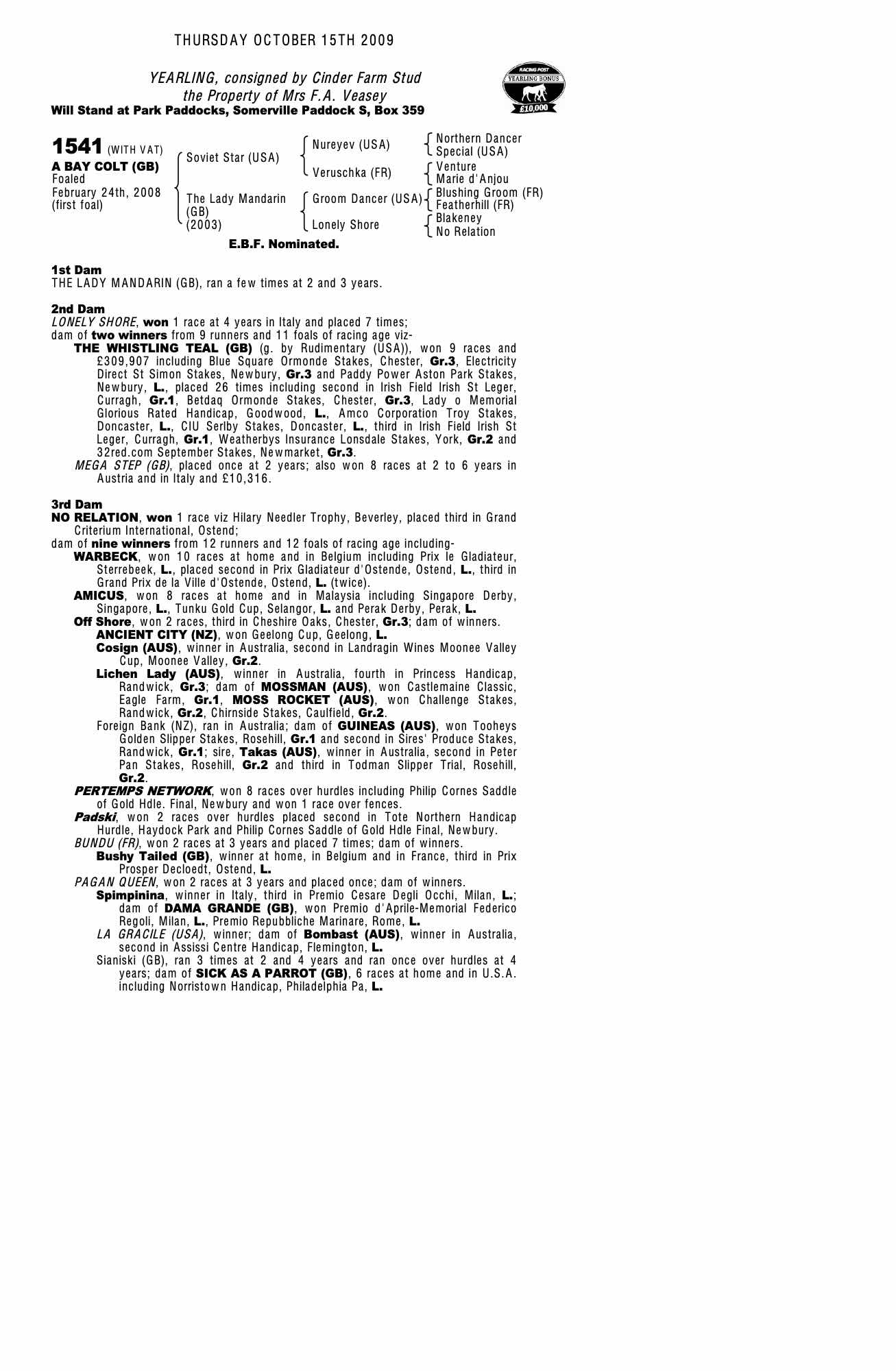 October Yearling Sale, Book 3 2010 lot 1862 F. by Three Valleys (USA) 2009, Cinder Farm Stud=>Vendor 800 gns