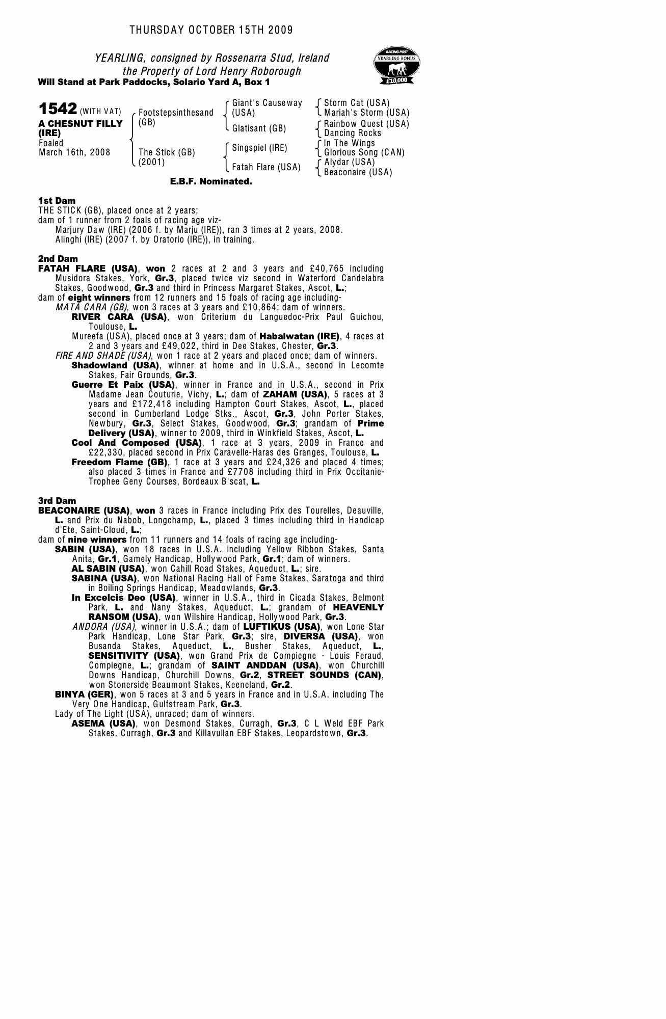 Autumn Horses in Training Sale 2009 lot 830 Alinghi (IRE) (F. by Oratorio (IRE)), East Everleigh Stables (R. Hannon)=>Georgia Stamoulakatou 4,000 gns