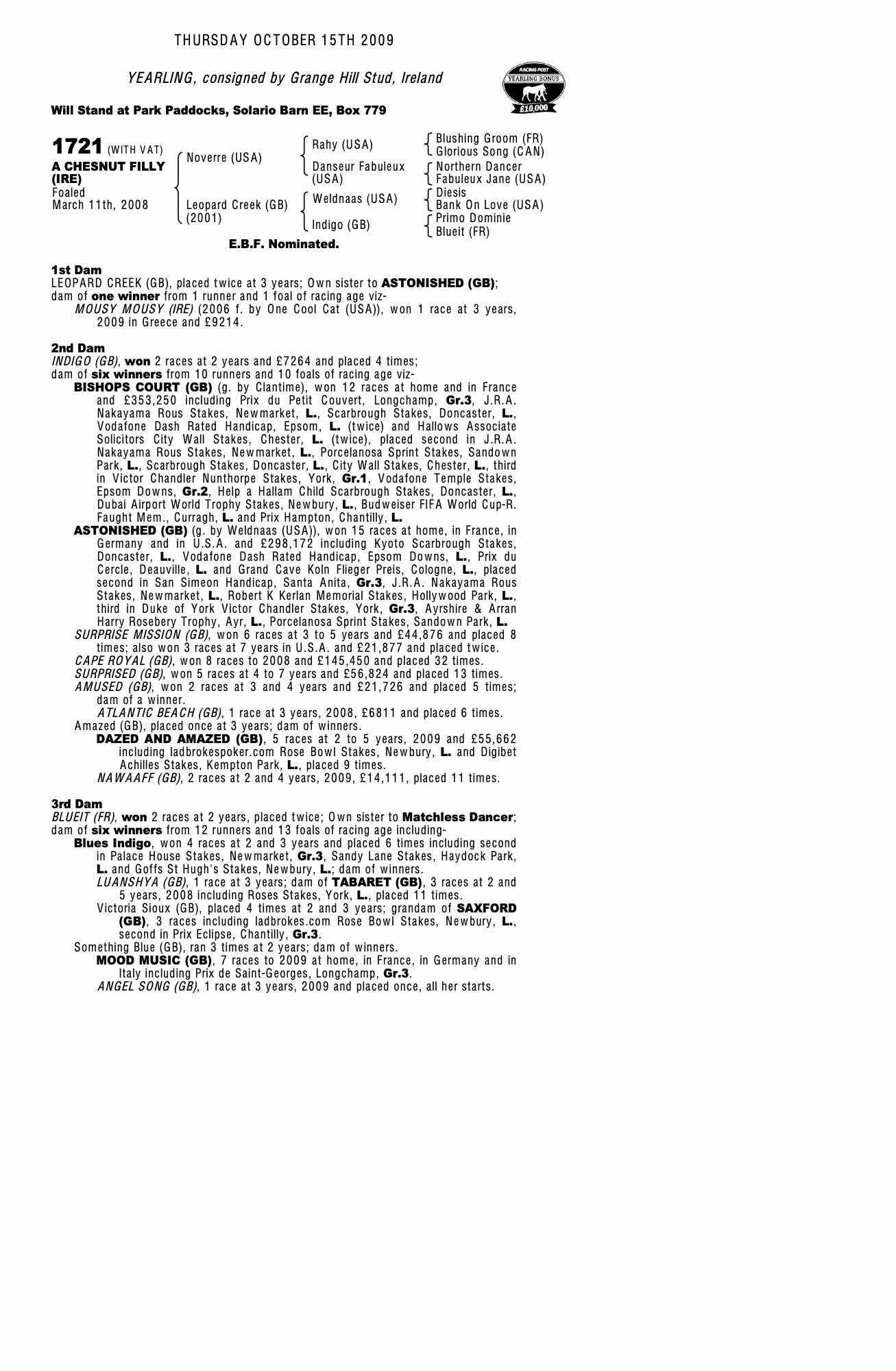 Consignor: Grange Hill Stud, Ireland