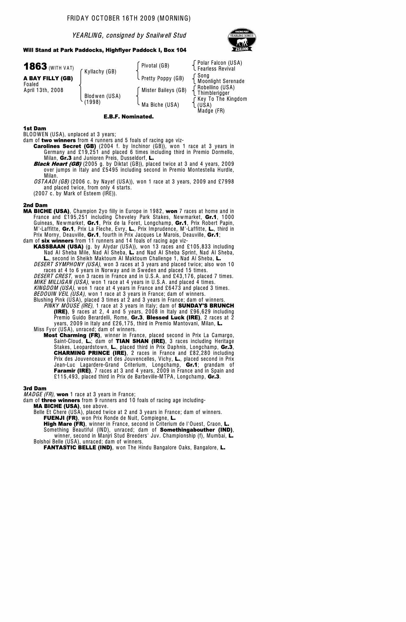 Consignor: Snailwell Stud
