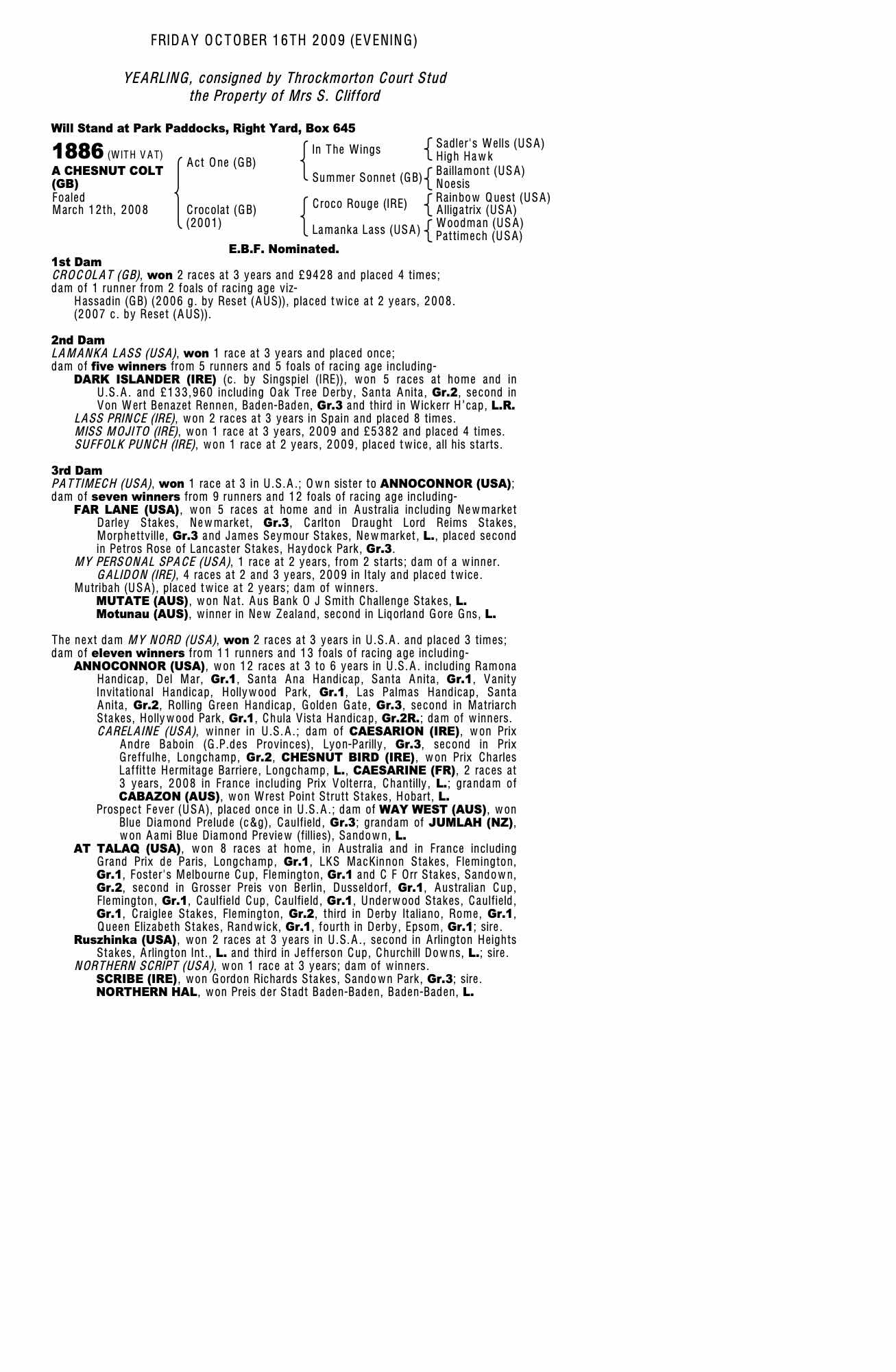 October Yearling Sale, Book 2 2010 lot 941 C. by Singspiel (IRE) 2009, Throckmorton Court Stud=>Vendor 26,000 gns