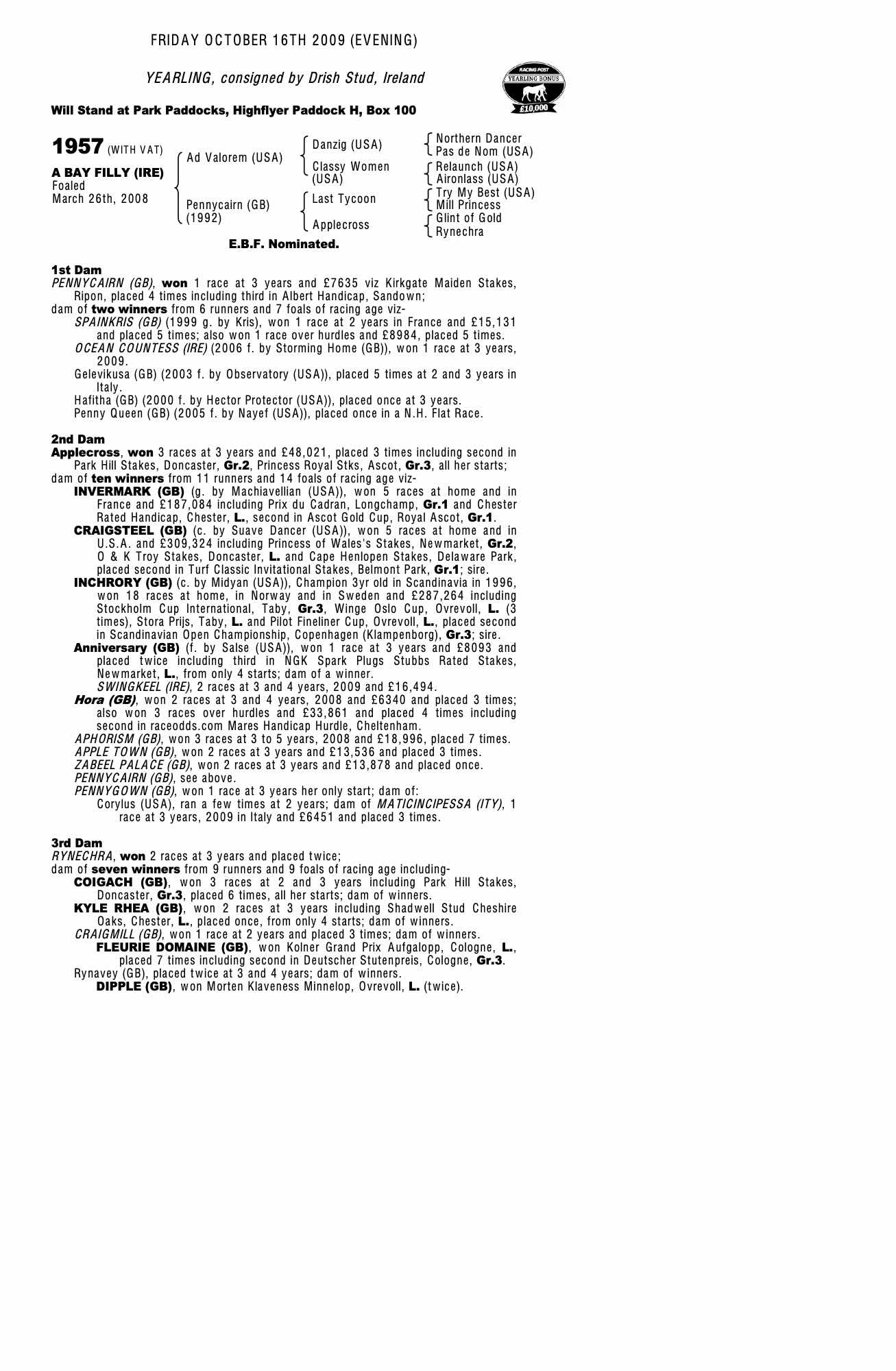 October Yearling Sale, Book 2 2006 lot 1419 F. by Nayef (USA) 2005, Glidawn Stud, Ireland=>Blandford Bloodstock 7,000 gns