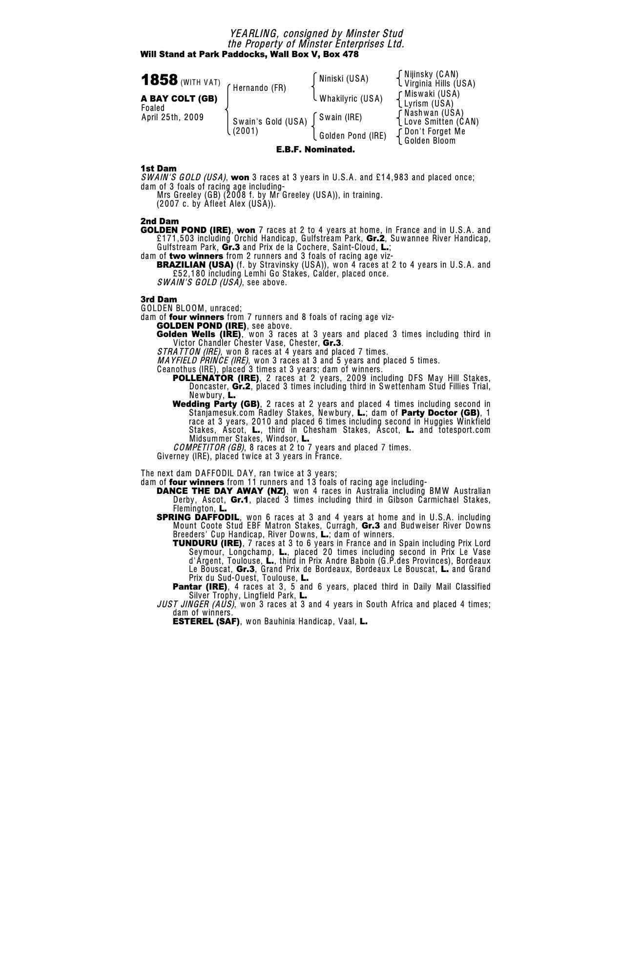October Yearling Sale, Book 2 2009 lot 819 F. by Mr Greeley (USA) 2008, Minster Stud=>Vendor 34,000 gns