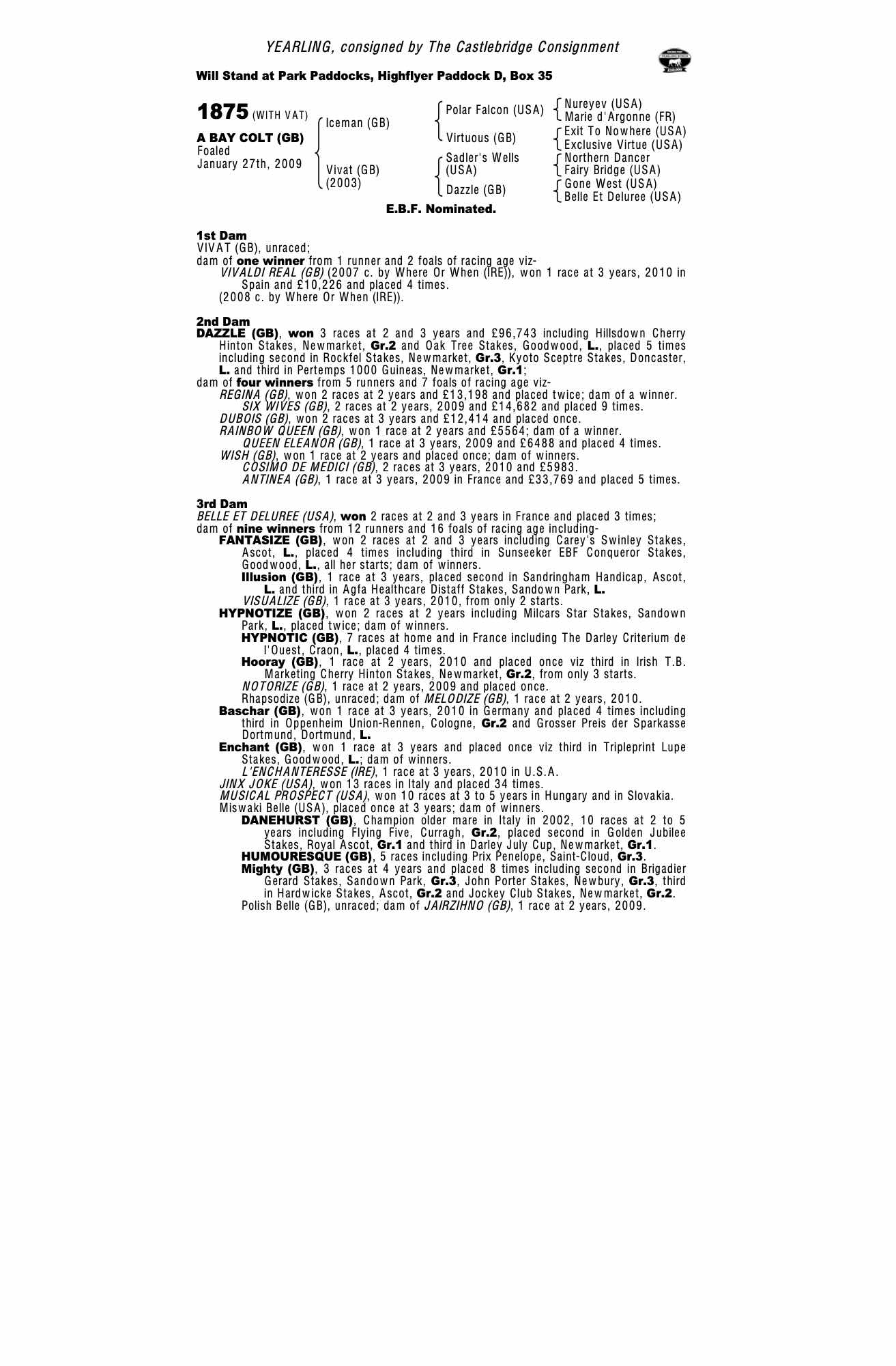 Under 3rd dam: HOORAY (GB), won Cheveley Park Stakes, Newmarket, Gr.1, Lowther Stakes, York, Gr.2 & Sirenia Stakes, Kempton Park, Gr.3. Jairzihno (GB), placed 2nd in Del Mar Derby, Del Mar, Gr.2.