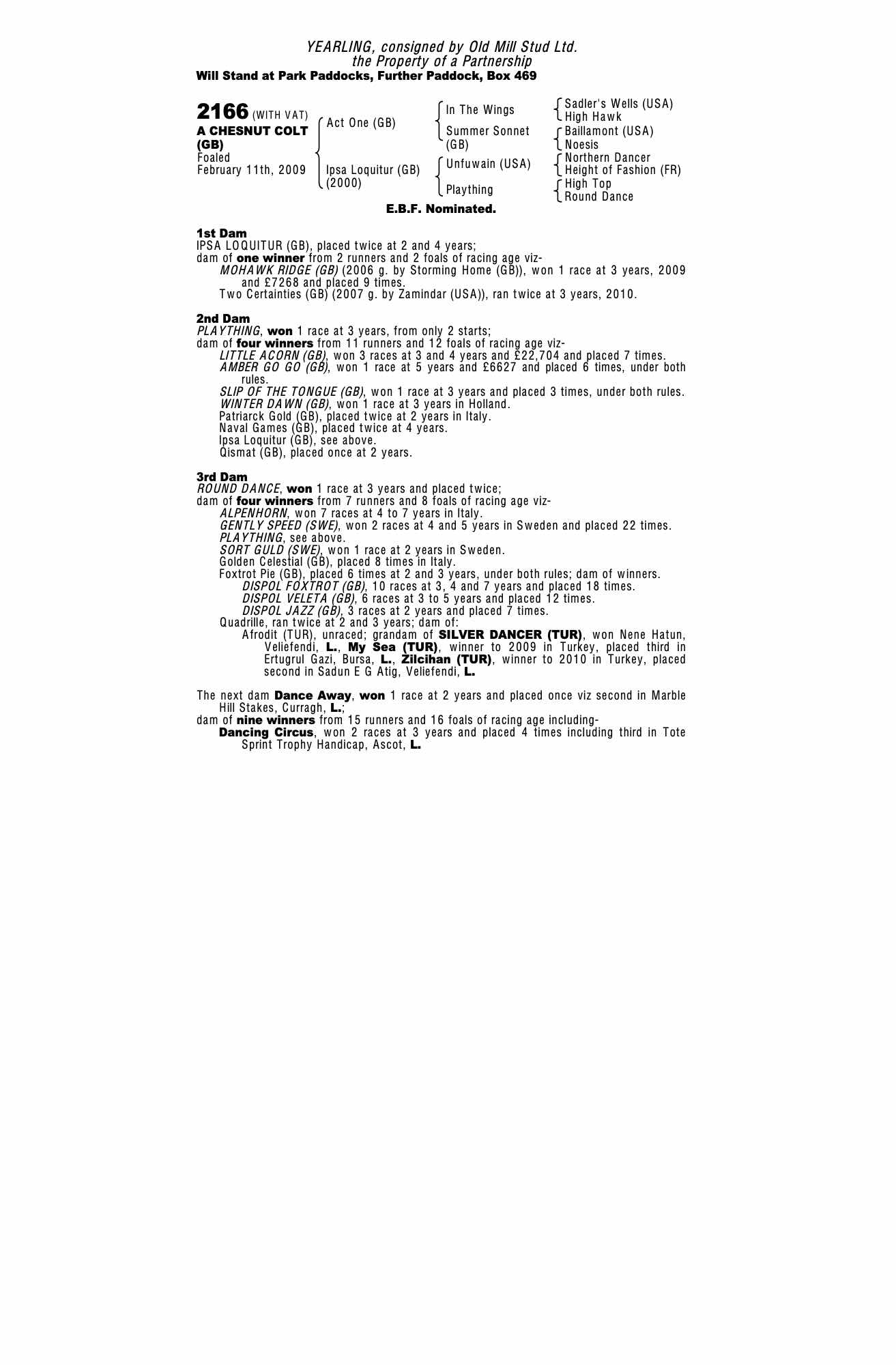 October Yearling Sale, Book 3 2012 lot 1627 F. by Tiger Hill (IRE) 2011, Old Mill Stud Ltd.=>Vendor 6,000 gns