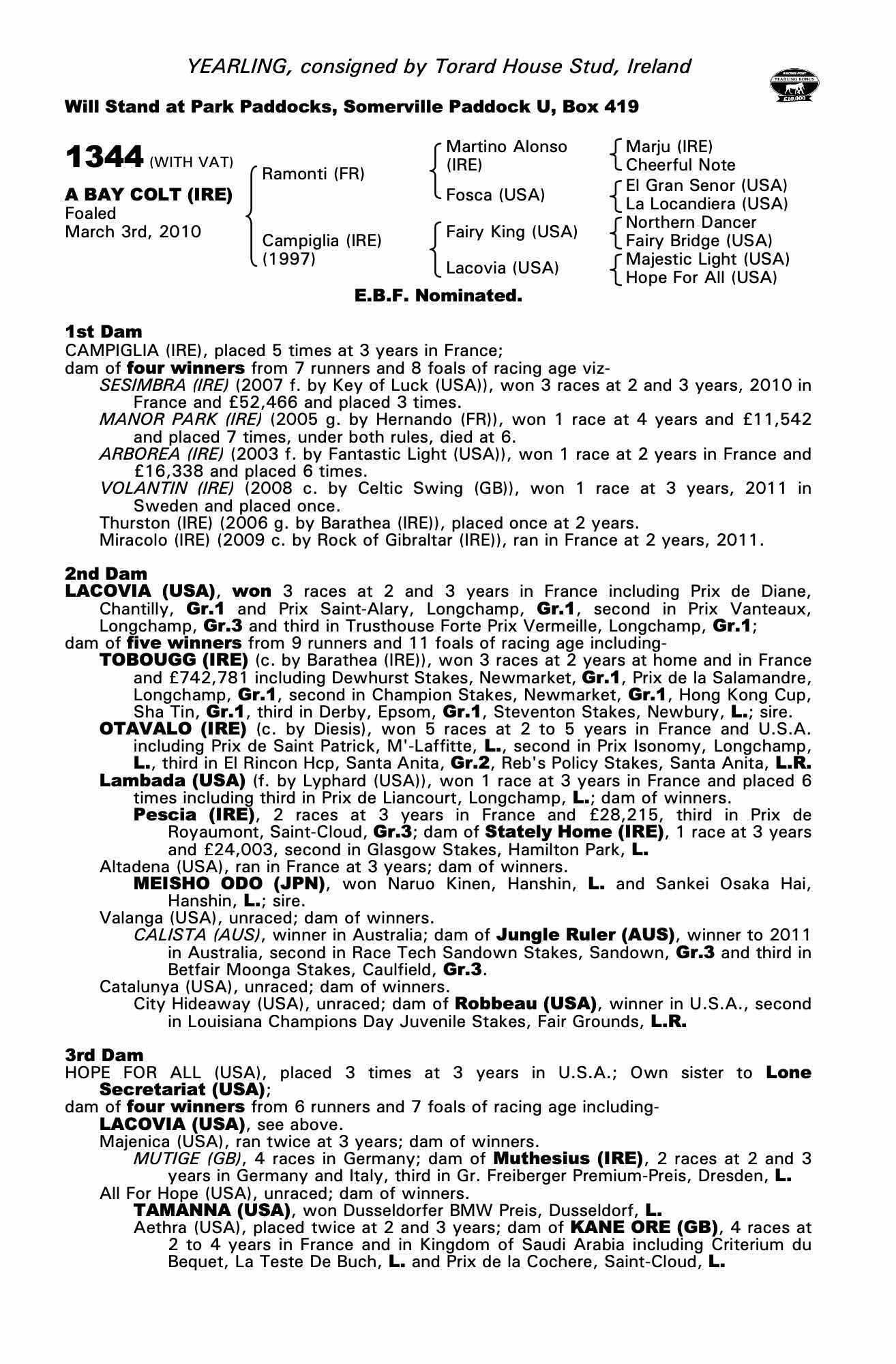 September Yearling Sale 2013 lot 354 F. by Kodiac (GB) 2012, Miltown Park Stud=>David Griffiths €9,000