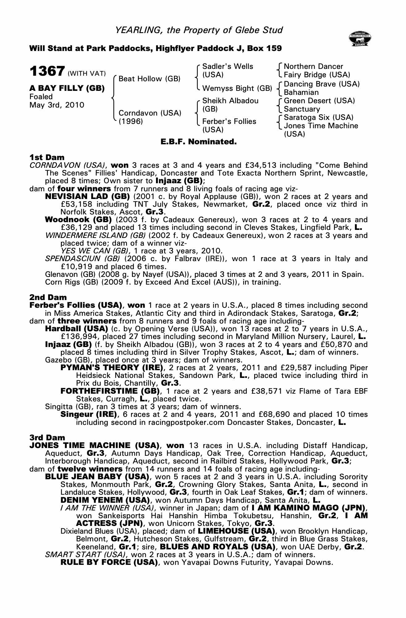 December Mare Sale 2011 lot 1373 Corn Rigs (GB) (F. by Exceed And Excel (AUS)), Glebe Stud=>PD Player 5,500 gns