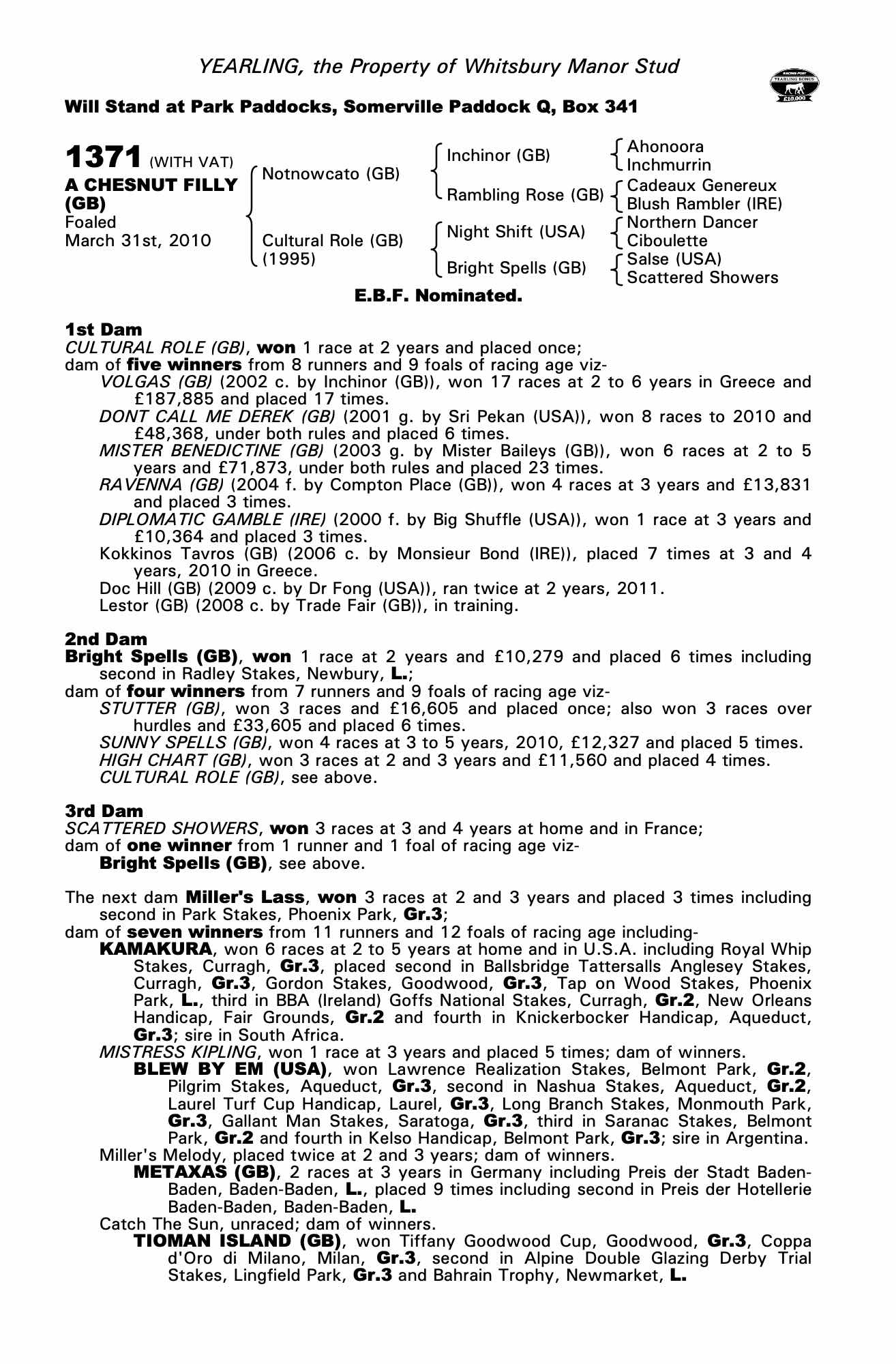 December Foal Sale 2011 lot 442 C. by Compton Place (GB) 2011, Whitsbury Manor Stud=>Oaks Farm Stables 25,000 gns