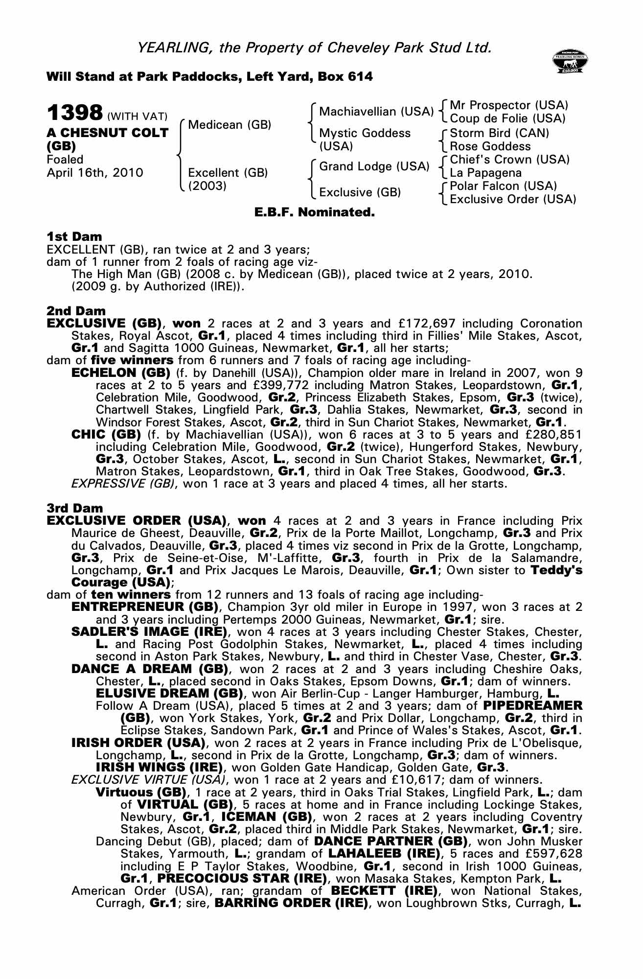 October Yearling Sale, Book 1 2010 lot 232 C. by Authorized (IRE) 2009, Cheveley Park Stud Ltd.=>Lot Not Sold 17,000 gns