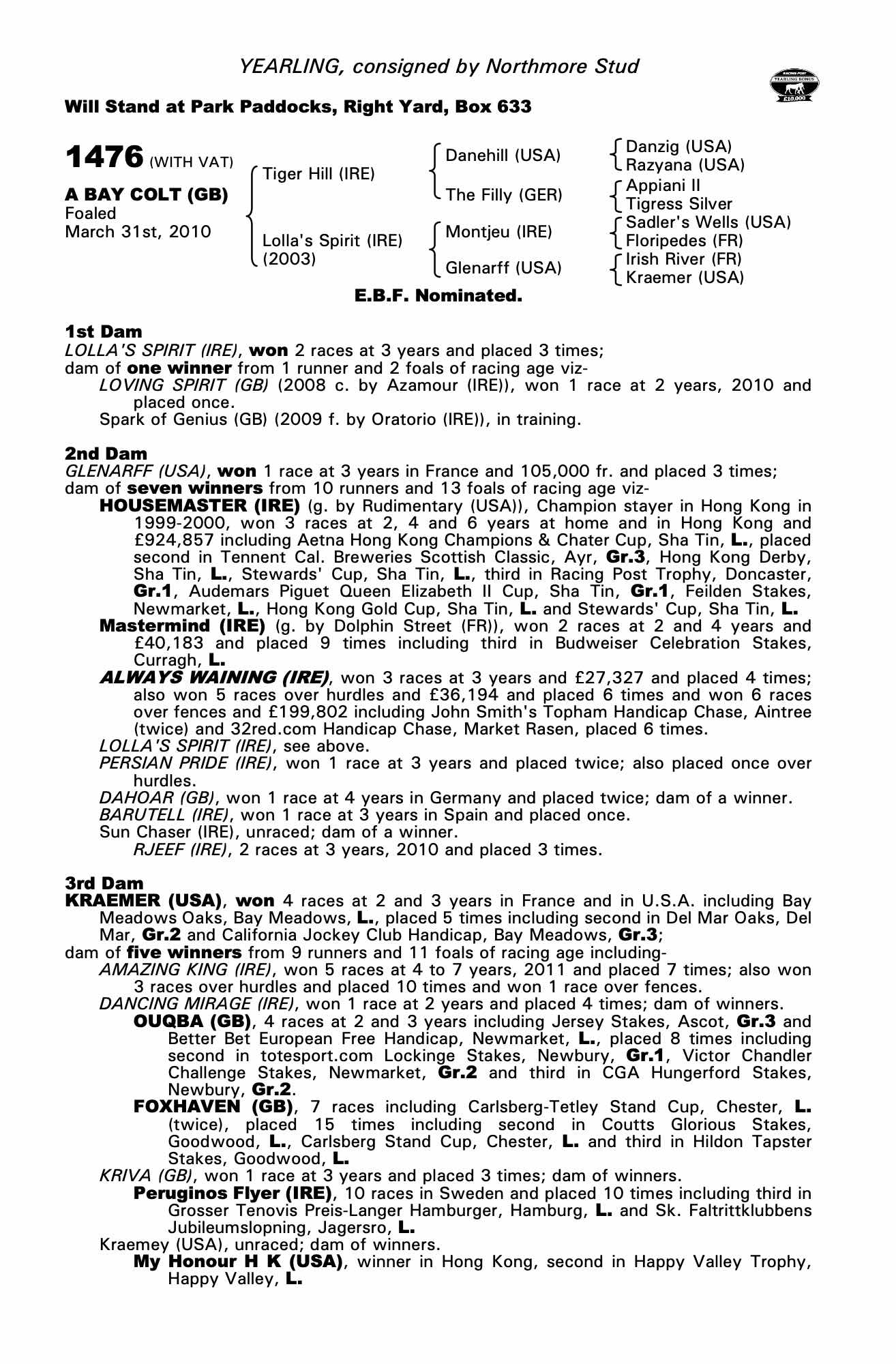 Consignor: Northmore Stud