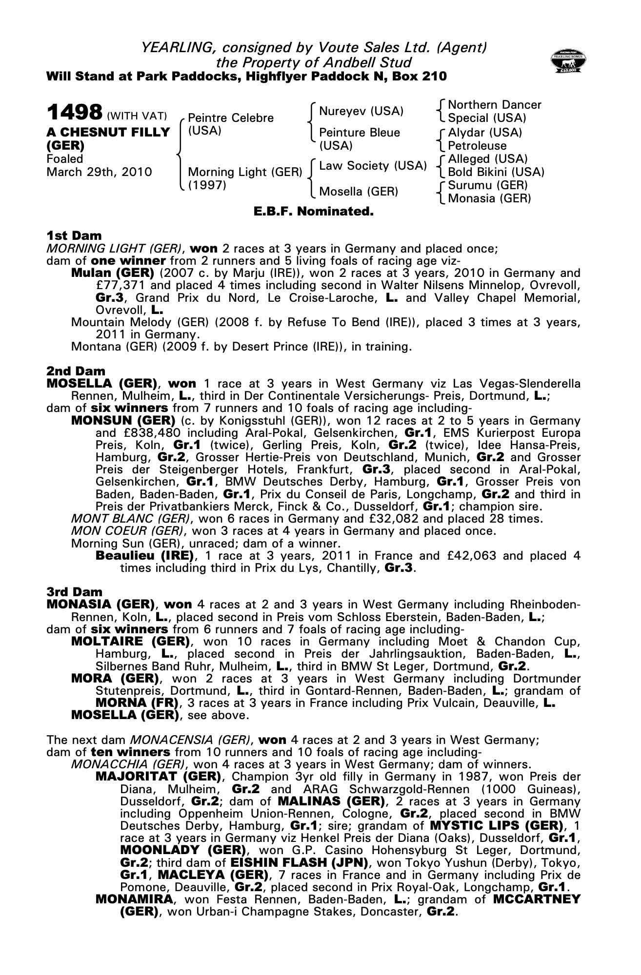 October Yearling Sale, Book 1 2006 lot 327 Morning Glory (GER) (F. by Pentire (GB)), Gestut Isarland, Germany=>Vendor 190,000 gns