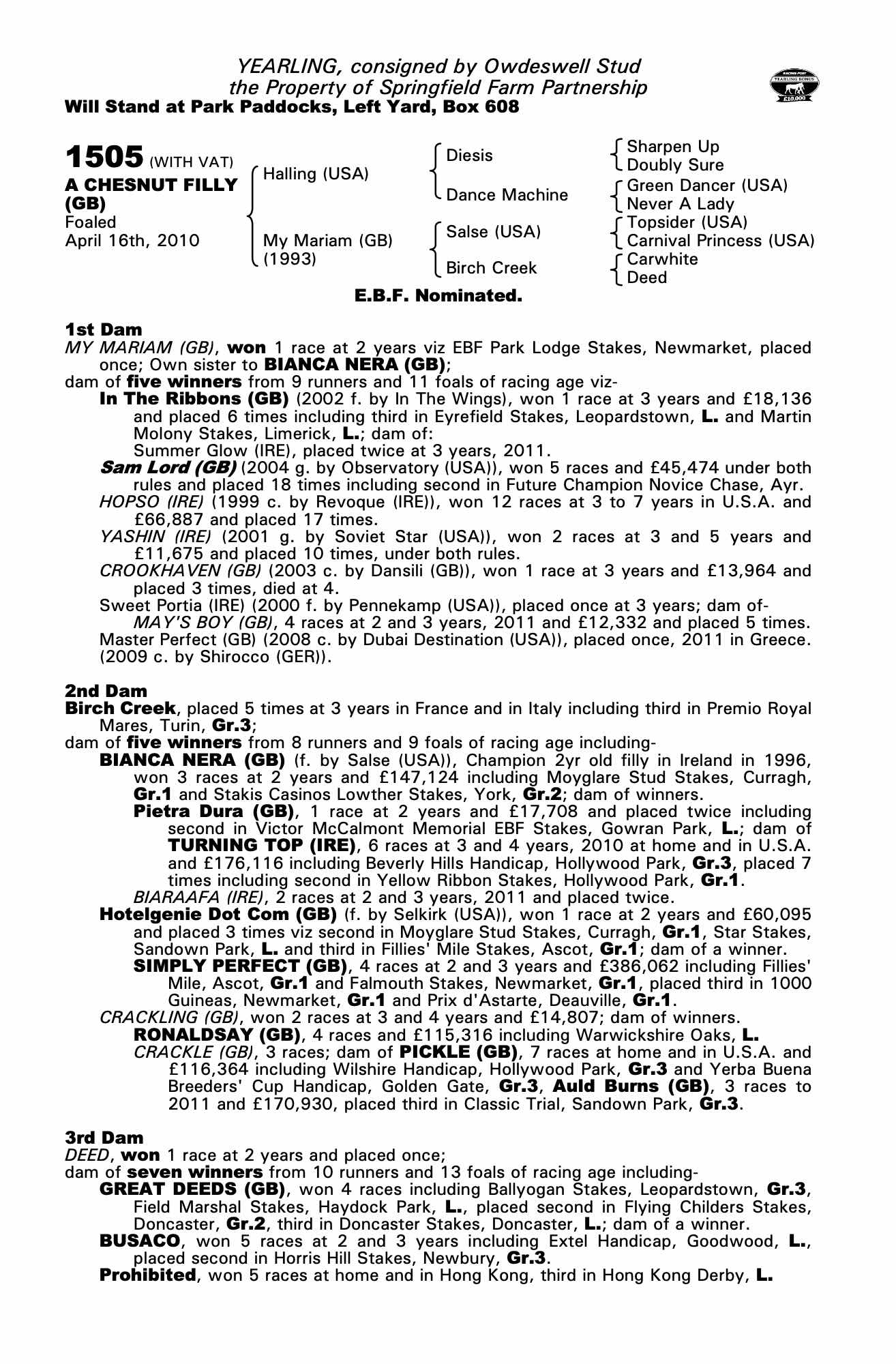 October Yearling Sale 1999 lot 516 F. by Charnwood Forest (IRE) , Owdeswell Manor Stud=>Emerald Bloodstock 10,500 gns