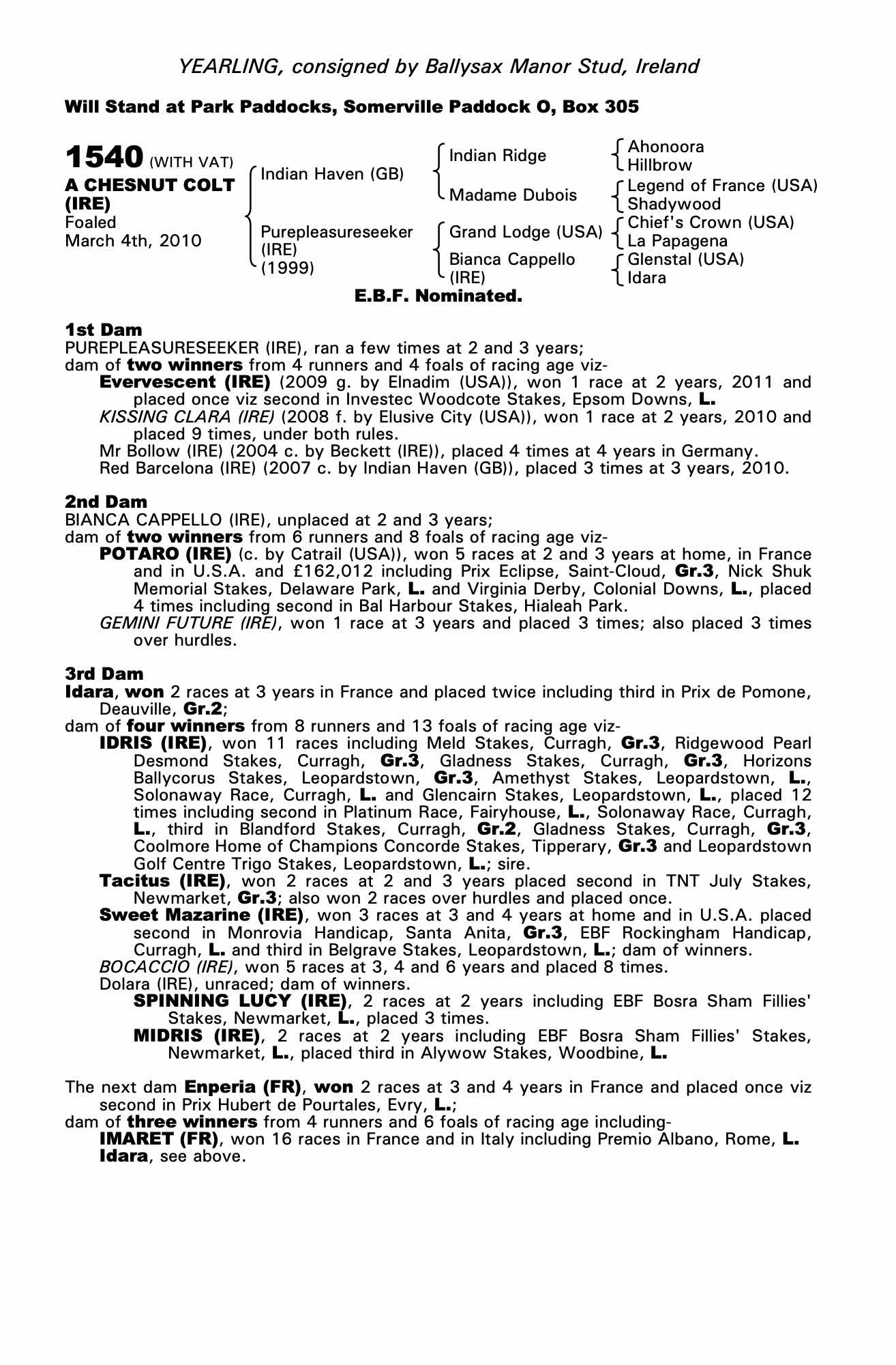 October Yearling Sale, Book 3 2008 lot 1802 C. 2007, Ballysax Manor Stud, Ireland (Agent)=>MH Tompkins 12,000 gns