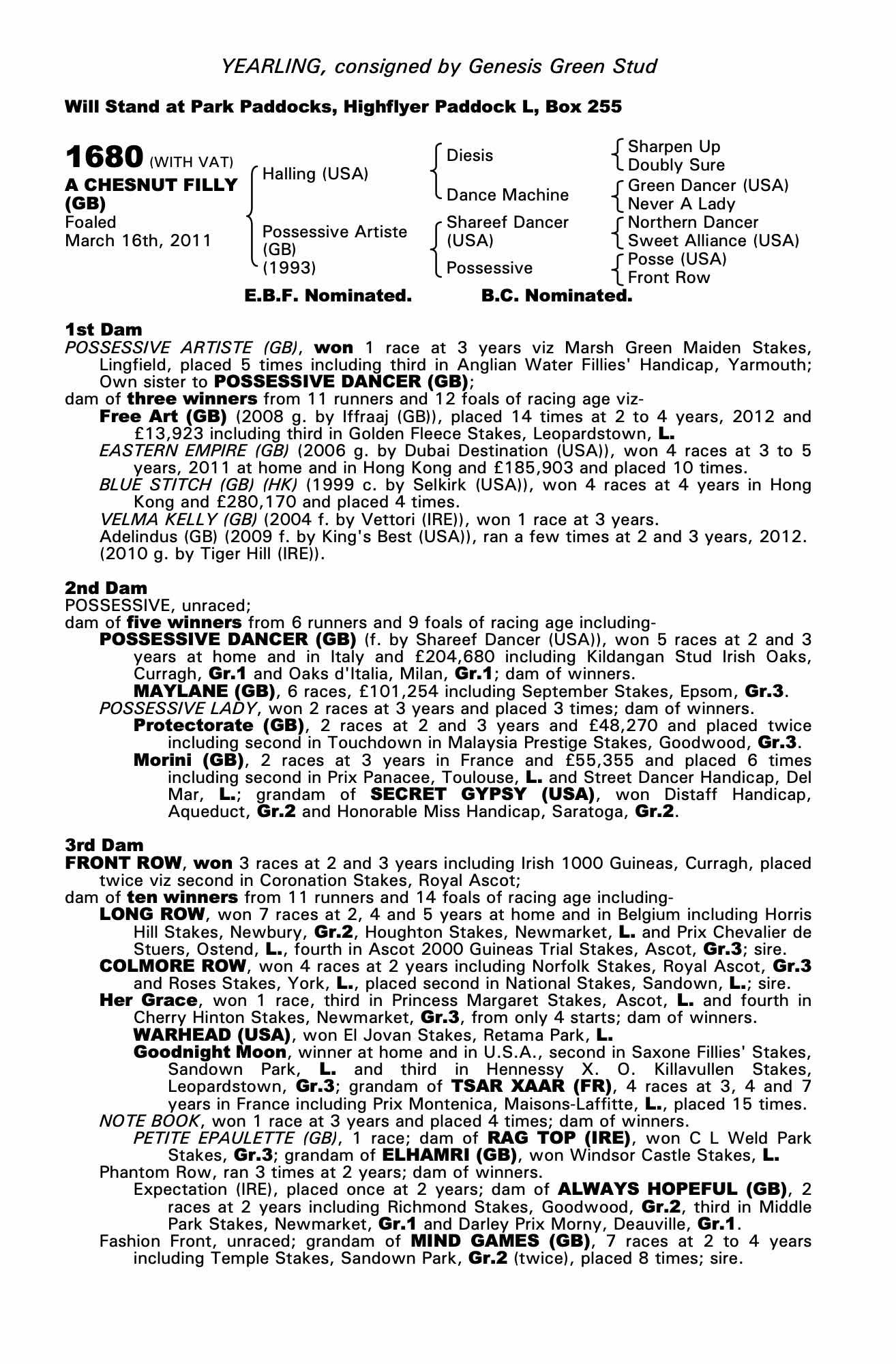 December Mare Sale 2012 lot 2319 Velma Kelly (GB) (M. by Vettori (IRE)), Genesis Green Stud=>Vendor 4,000 gns