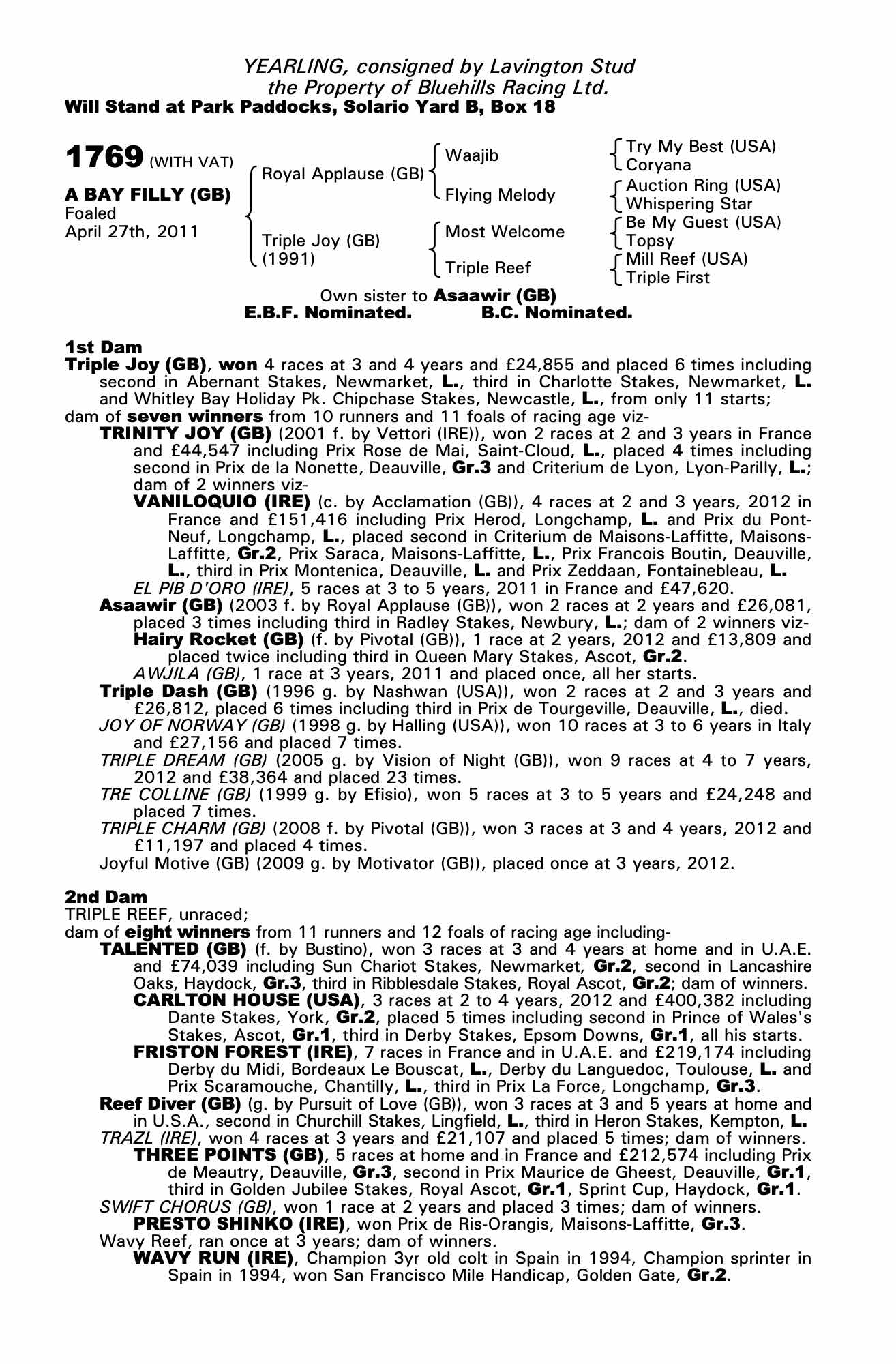 Autumn Horses in Training Sale 2000 lot 670 Triple Dash (GB) (G. by Nashwan (USA)), Heath House Stables=>BBA (UK) 72,000 gns