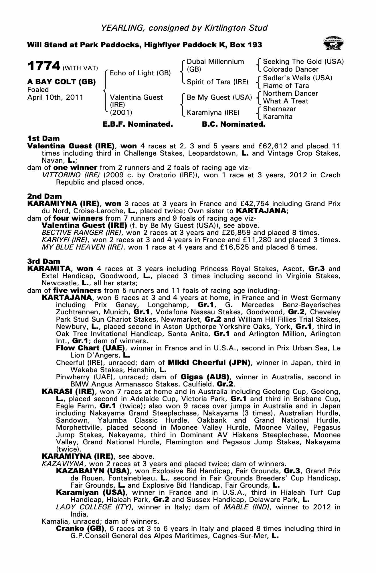July Sale 2015 lot 525 Beardwood (GB) (C. by Dutch Art (GB)), Musley Bank Stables (R. Fahey)=>Vendor 10,000 gns