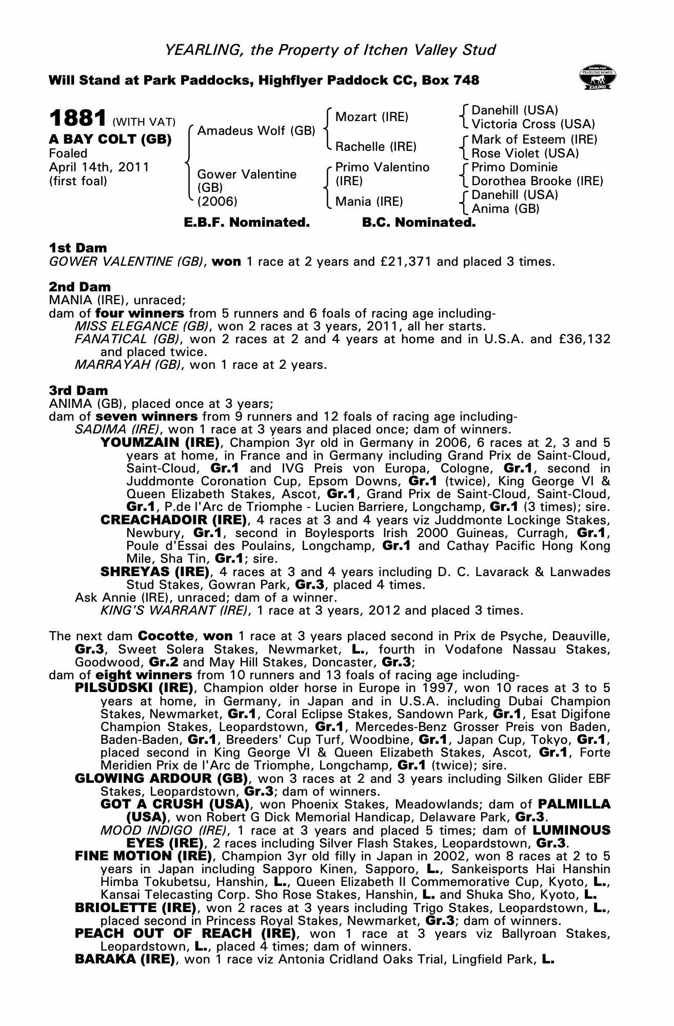 Consignor: Itchen Valley Stud