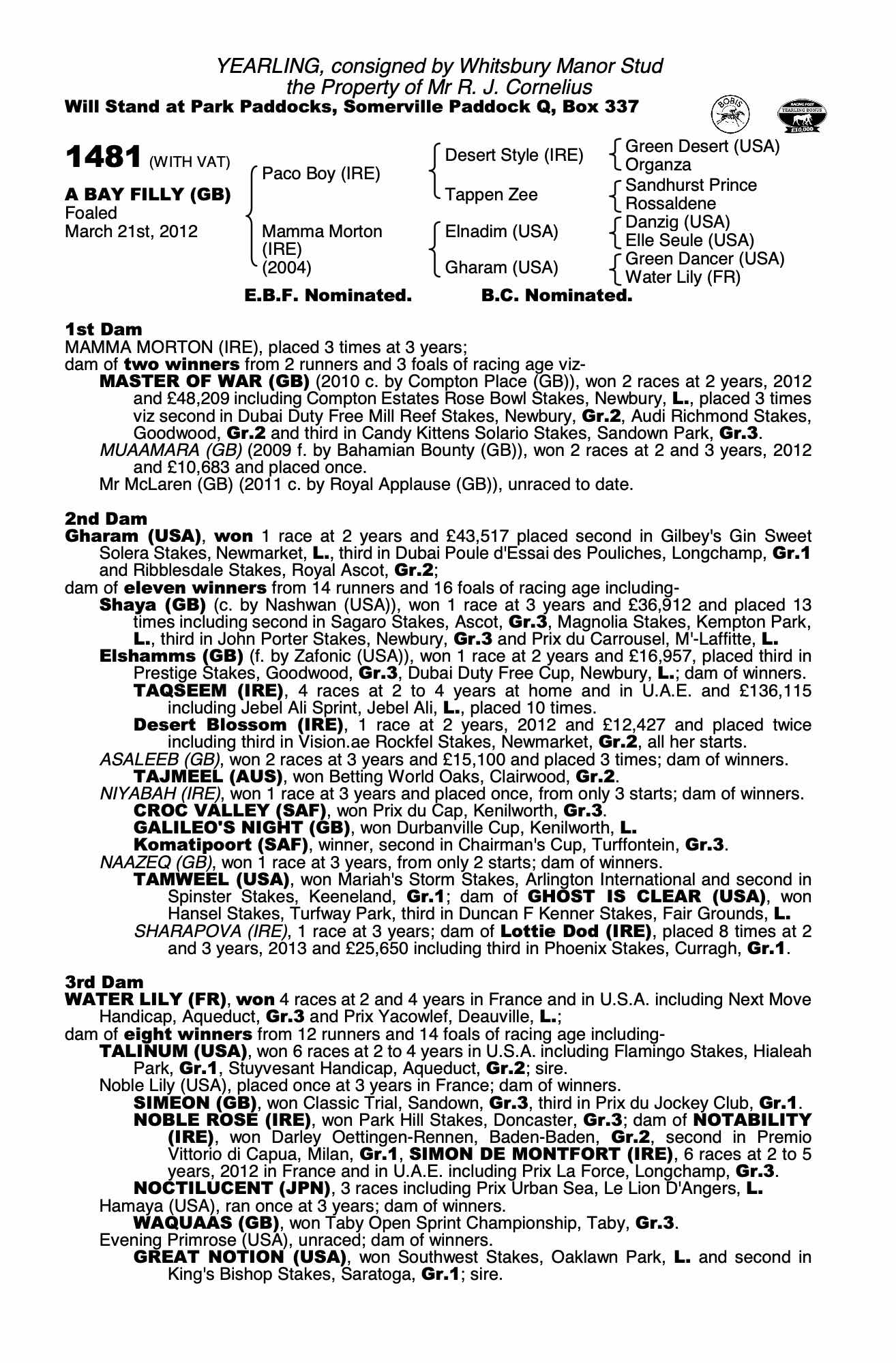 December Mare Sale 2023 lot 1440 La Foglietta (GB) (M. by Lope de Vega (IRE)), Highclere Stud=>Kendal Equine 10,000 gns