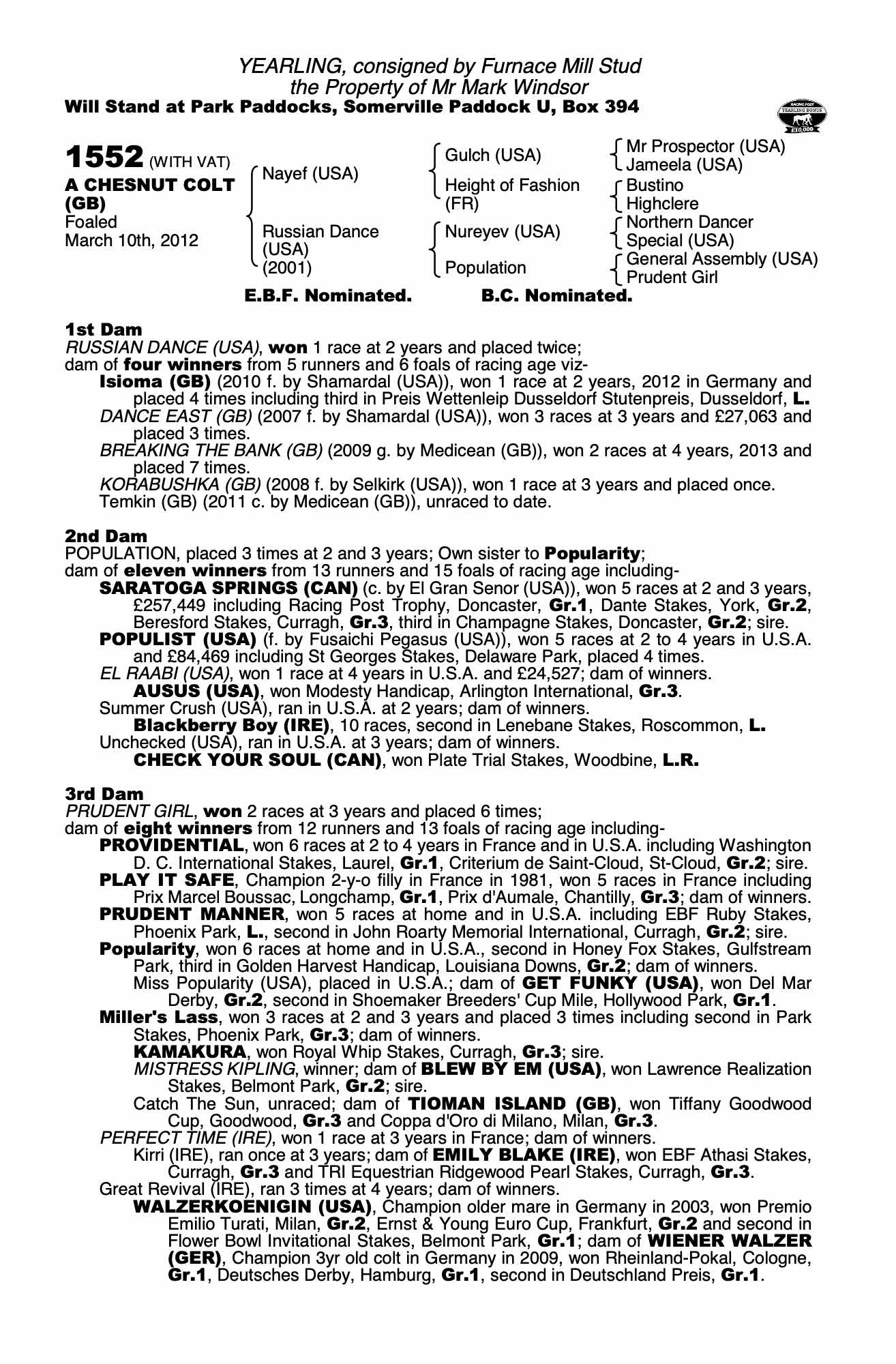 December Foal Sale 2012 lot 749, Cheveley Park Stud Ltd.=>Mark Windsor 11,000 gns