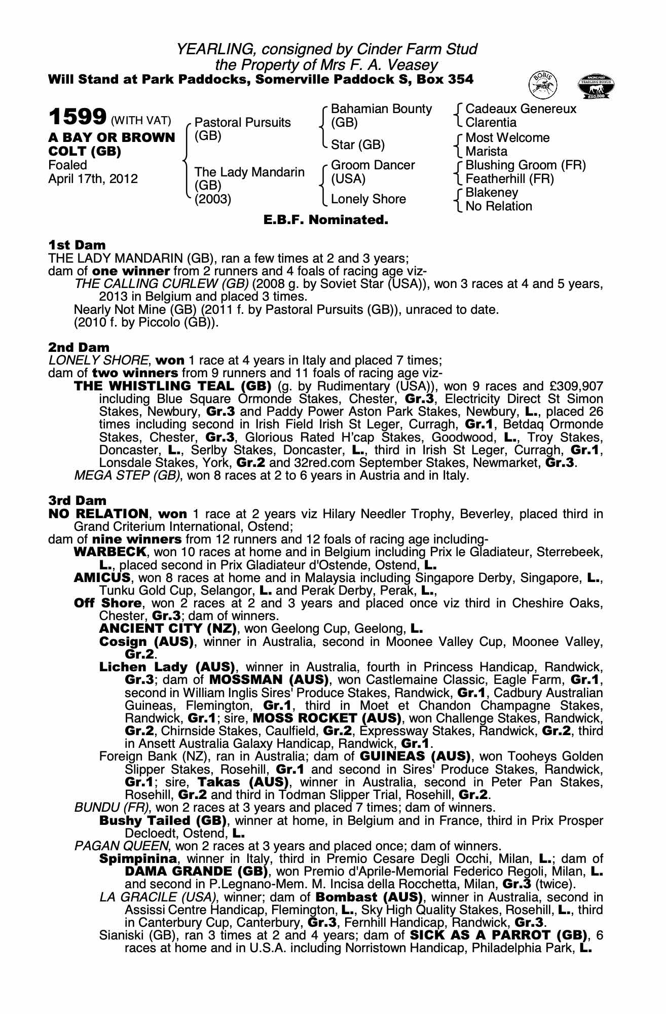Consignor: Cinder Farm Stud