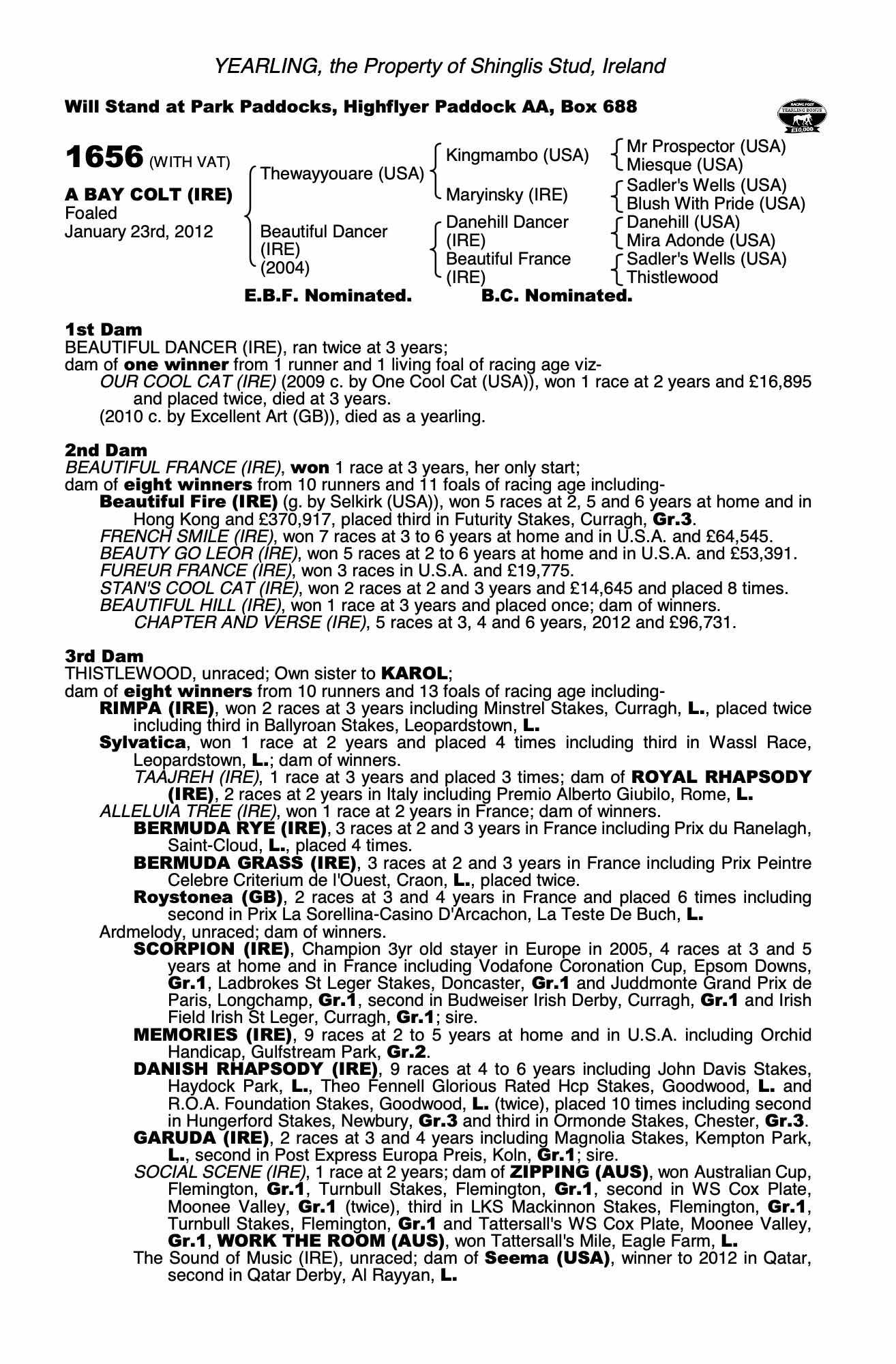 Consignor: Shinglis Stud, Ireland