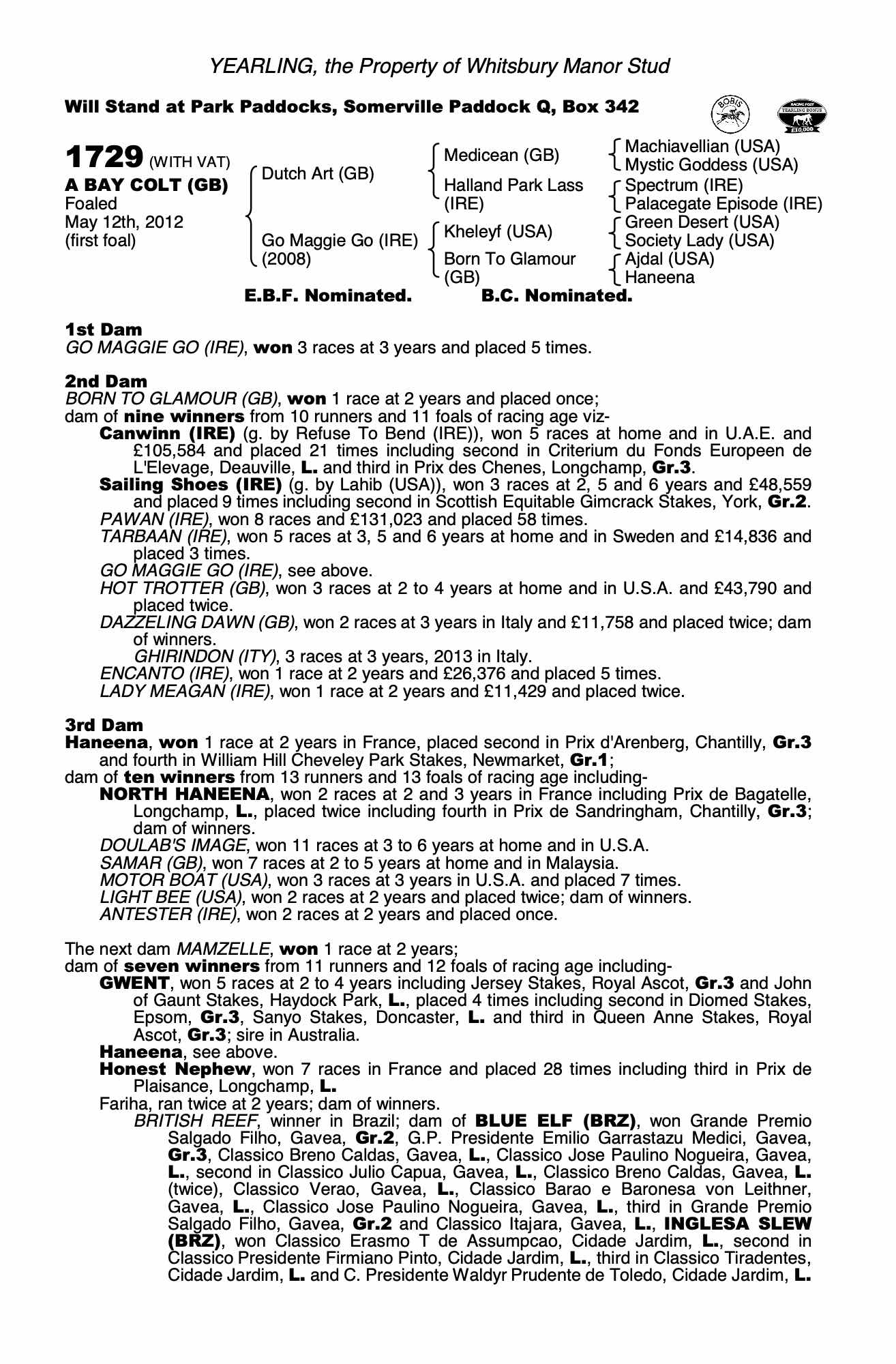 September Yearling Sale 2017 lot 458 C. by Canford Cliffs (IRE) 2016, Collegelands Stud=>Hamish Macauley €10,000