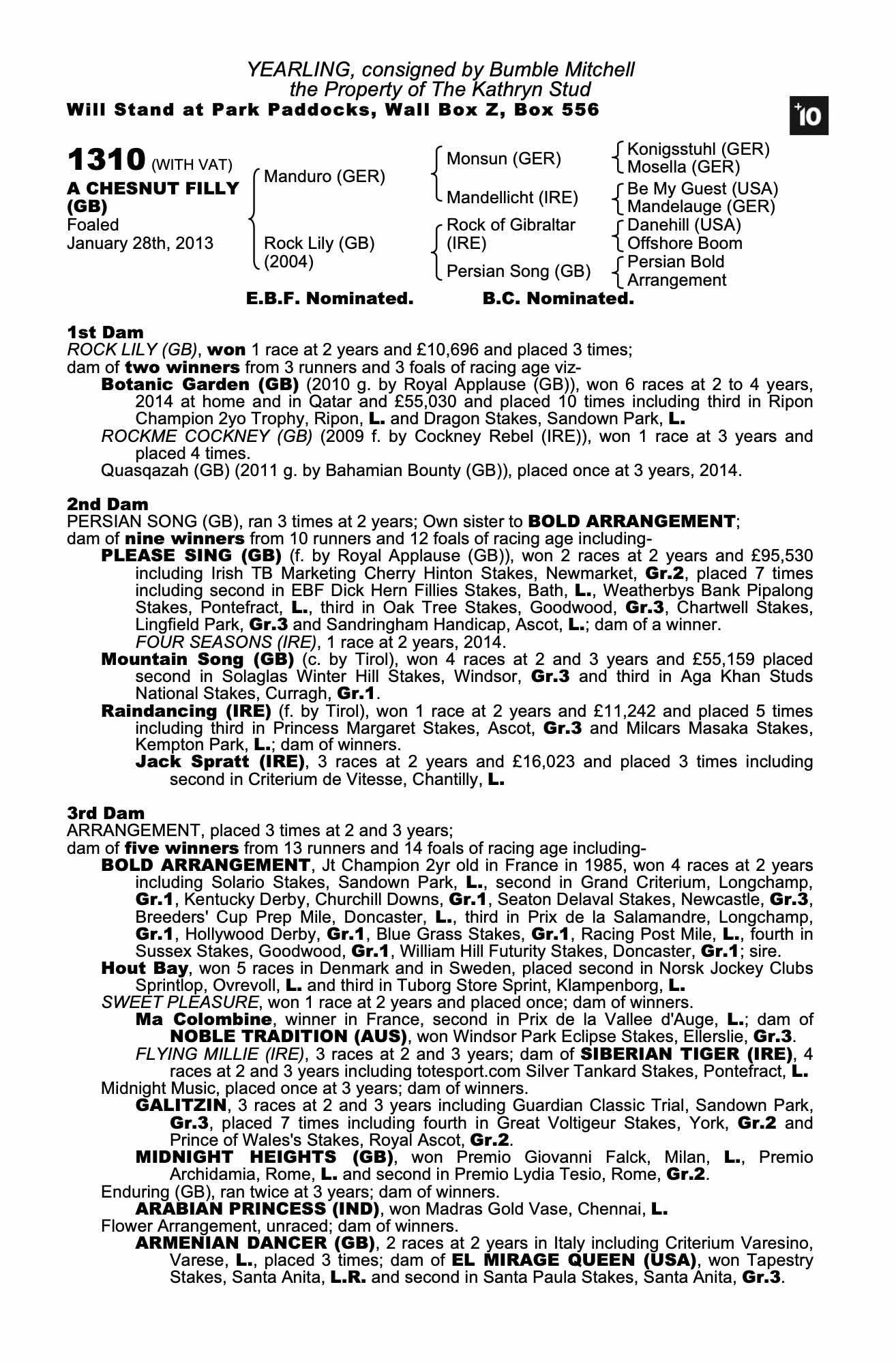 July Sale 2012 lot 255 Botanic Garden (GB) (C. by Royal Applause (GB)), Averham Park Stables (D. Brown)=>Bahman Ghazali 45,000 gns