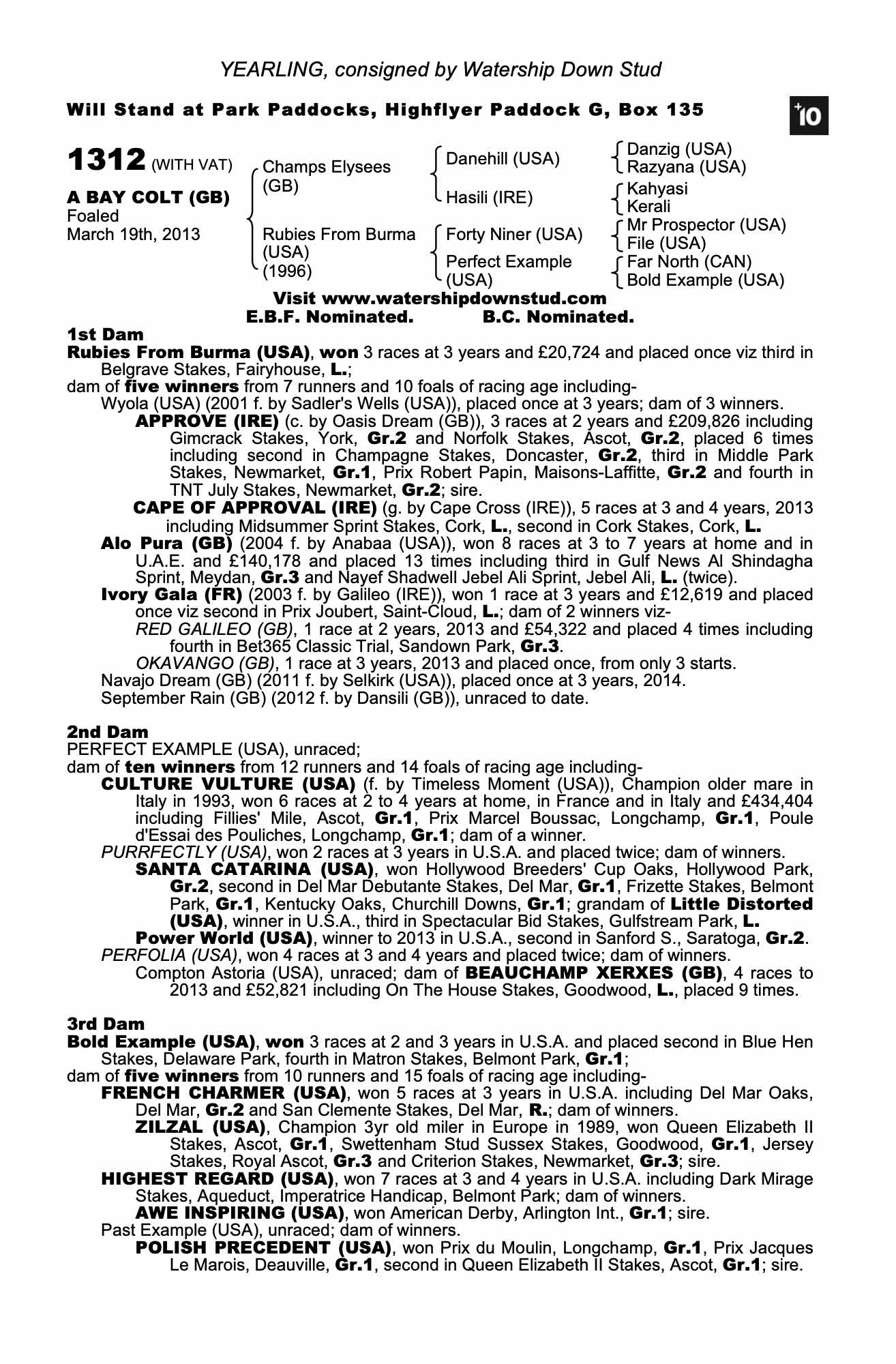 October Yearling Sale, Book 2 2012 lot 1006 F. by Selkirk (USA) 2011, Watership Down Stud=>Ferrybank Properties 33,000 gns