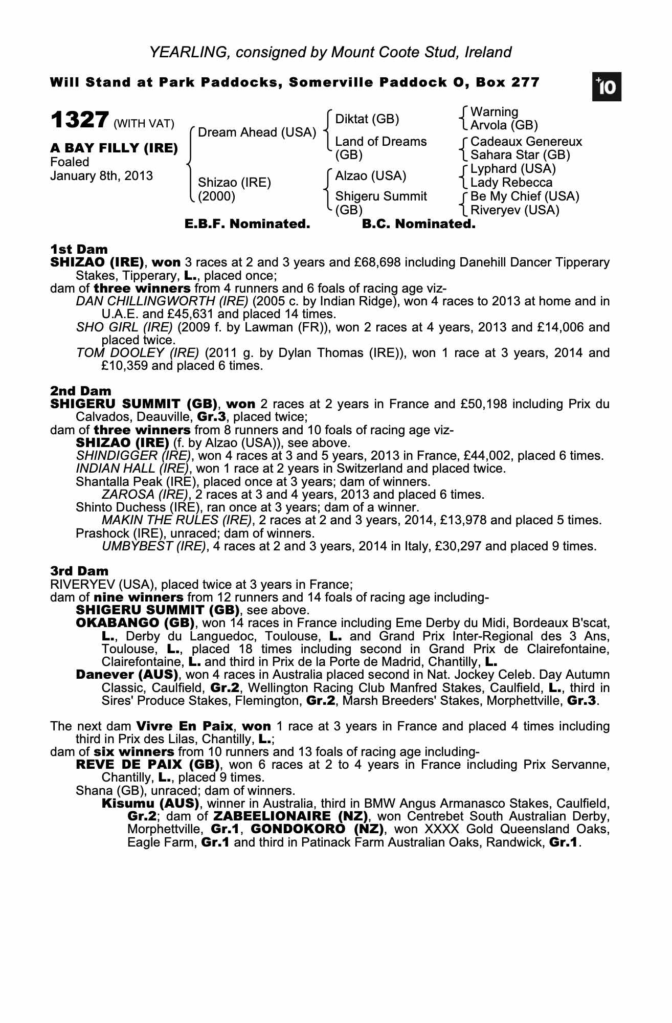 Consignor: Mount Coote Stud, Ireland