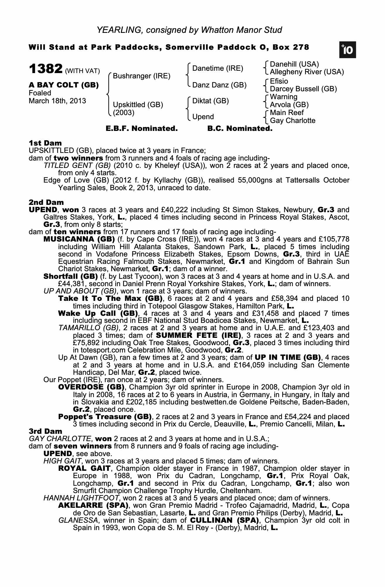 Consignor: Whatton Manor Stud