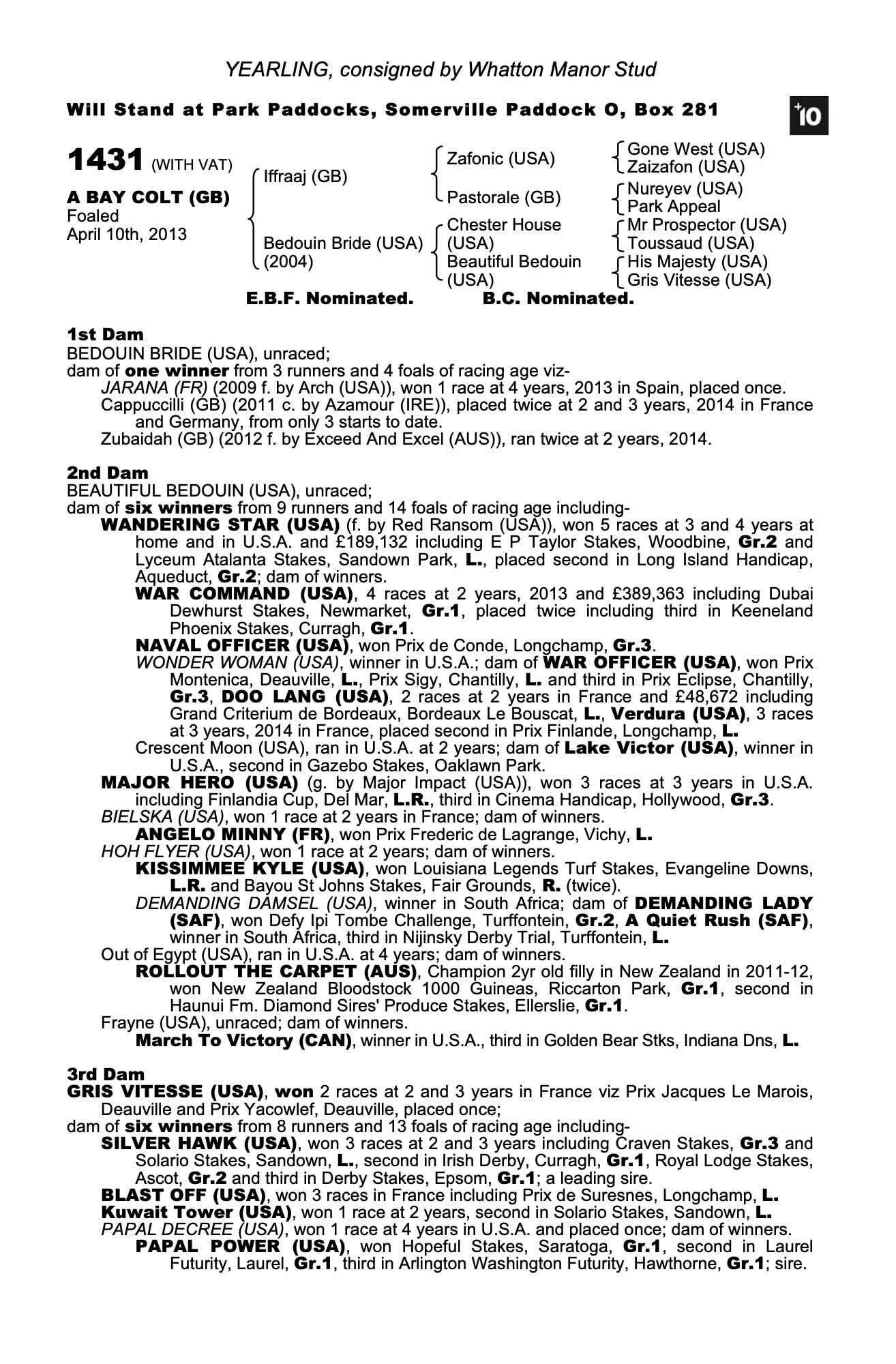 October Yearling Sale, Book 2 2013 lot 1071 F. by Exceed And Excel (AUS) 2012, Whatton Manor Stud=>Stephen Hillen Bloodstock 30,000 gns